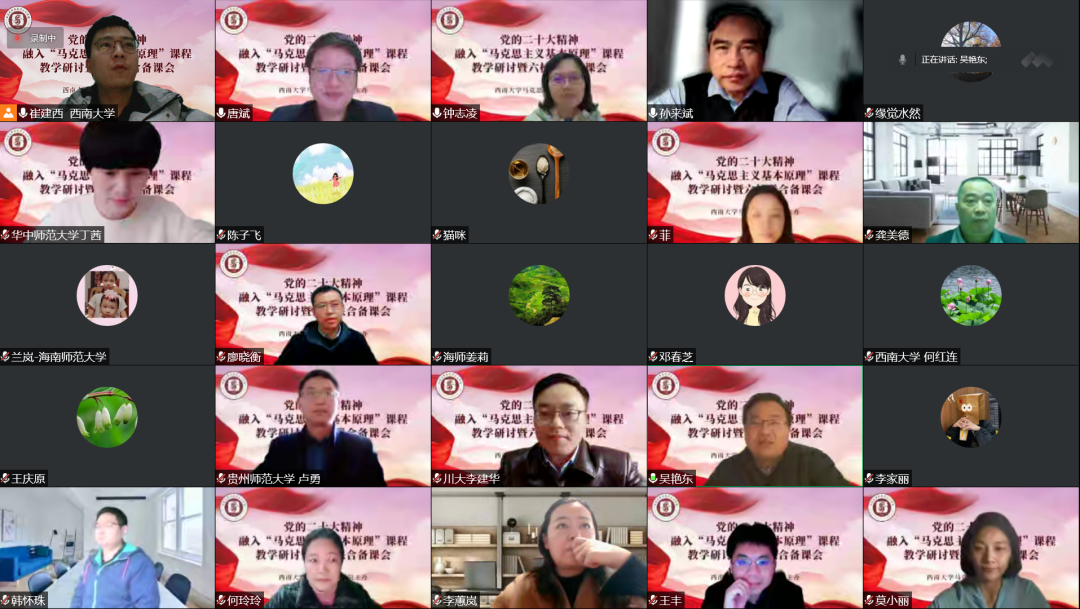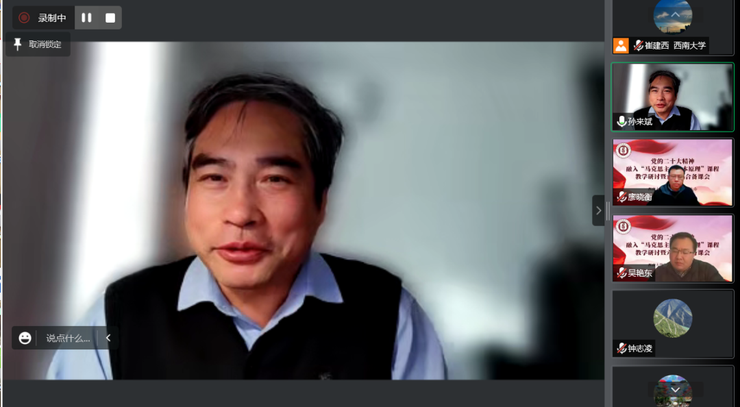 2022年12月2日上午,党的二十大精神融入“马克思主义基本原理”课程教学研讨暨六校联合备课会在云端顺利召开。本次活动由伟德国际1946主办,全国高校思想政治理论课“手拉手”集体备课中心(伟德BV1946官网-重庆市)、重庆市大中小学思政课一体化建设协同创新中心承办,四川大学伟德国际1946、北京理工大学伟德国际1946、华中师范大学伟德国际1946、贵州师范大学伟德国际1946、海南师范大学伟德国际1946五所高校联合协办。会议分为开幕式、专家导学、示范教学、研讨交流、集体备课五个阶段,由伟德国际1946副经理吴艳东教授、伟德国际1946副经理王丰教授主持。