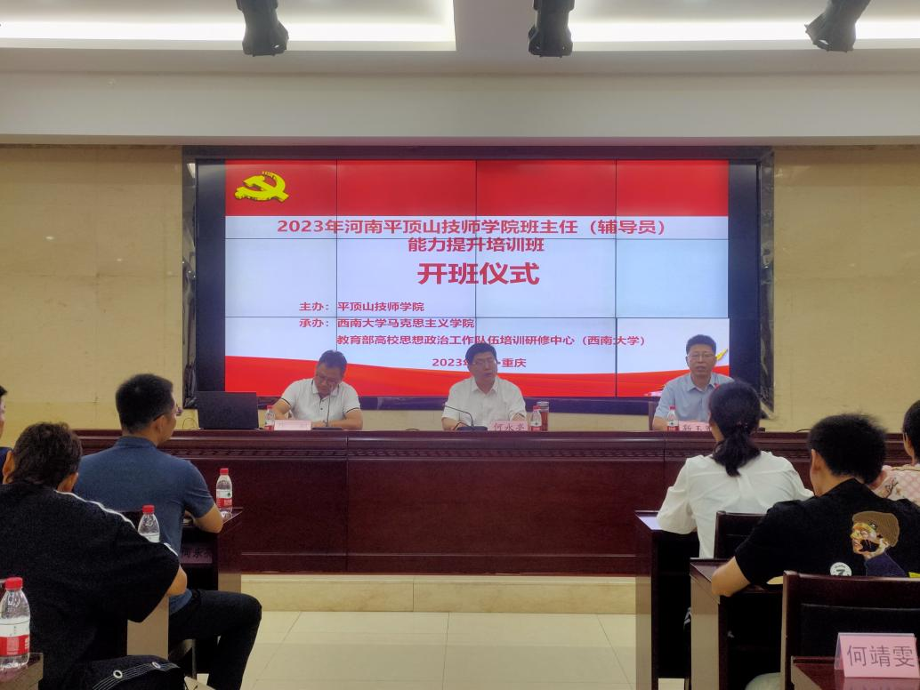 2023年6月27日上午9点,河南省平顶山技师公司班主任(辅导员)能力提升培训班在伟德BV1946官网学工部报告厅顺利开班。河南省平顶山技师公司党委委员、副经理何永亮,伟德国际1946副经理、教育部高校思想政治工作队伍培训研修中心(伟德BV1946官网)办公室主任靳玉军出席开班仪式,伟德国际1946社会服务办公室主任张帆主持开班仪式。