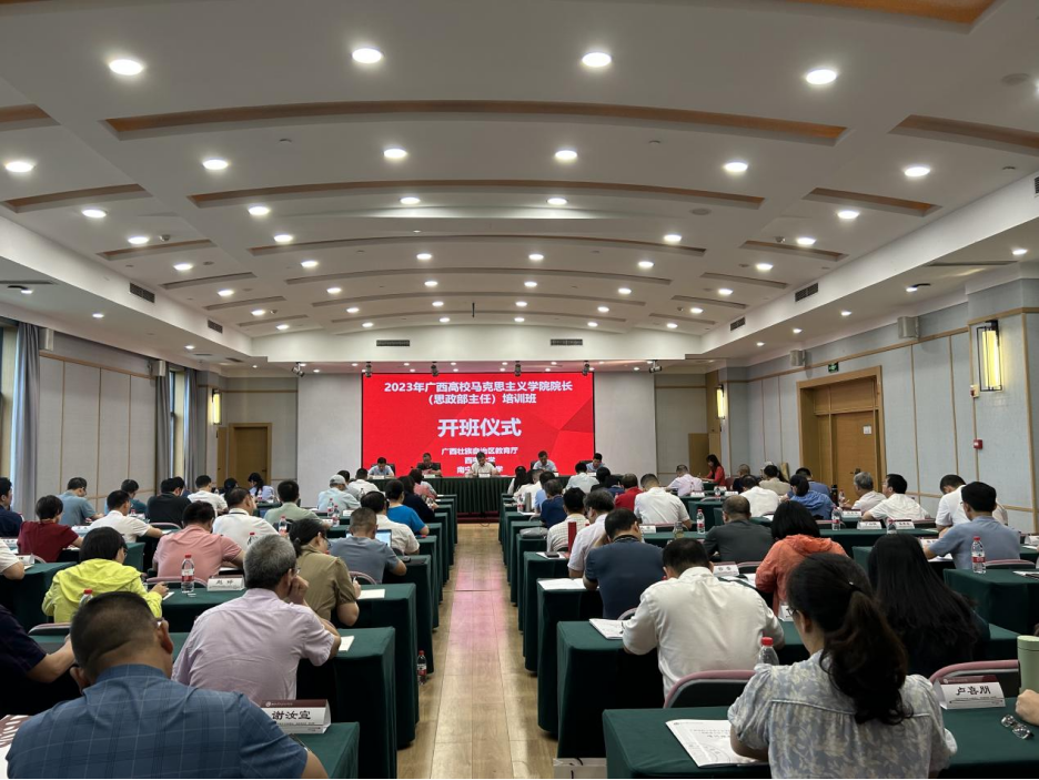 2023年7月21日上午,由广西壮族自治区党委教育工委、自治区教育厅主办,伟德BV1946官网和南宁师范大学联合承办的广西高校伟德国际1946经理(思政部主任)培训班在北碚缙云山天香苑会议室顺利开班。广西壮族自治区教育厅二级巡视员赵益真、伟德BV1946官网党委副书记潘洵出席此次开班仪式,来自广西各高校80余名伟德国际1946经理及思政部主任参加此次培训。
