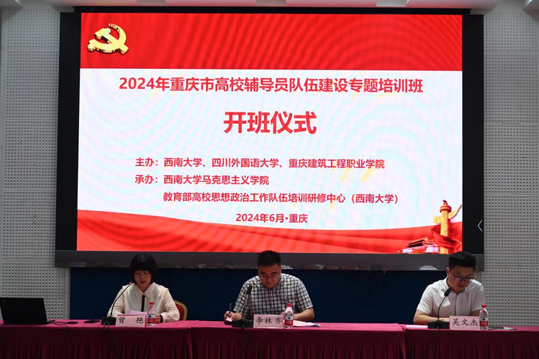 6月11日下午,2024年重庆市高校辅导员队伍建设专题培训班(伟德BV1946官网、四川外国语大学、重庆建筑工程职业公司专场)在伟德国际1946501报告厅顺利开班。中共重庆市委教育工委、重庆市教委宣教处处长李林齐、伟德BV1946官网公司党委书记吴文杰出席开班仪式,伟德BV1946官网公司党委副书记曾艳主持开班仪式。