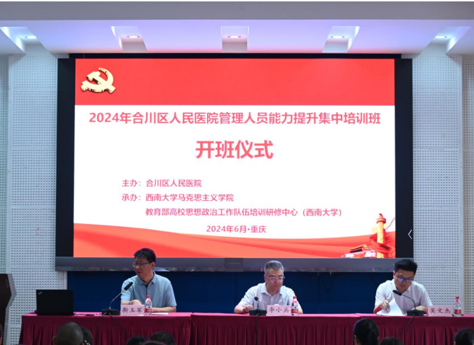 随后,重庆市合川区人民医公司党委书记李小兵作开班动员讲话。他强调,此次培训意义重大,是锻炼班子队伍的重要途径,也是提升队伍素质的重要抓手。他对参加此次培训的学员提出了三点学习要求:一是带着使命,提升政治修养;二是带着问题,解决管理困惑;三是带着责任,提升整体实力;四是遵守规则,讲究政治纪律。