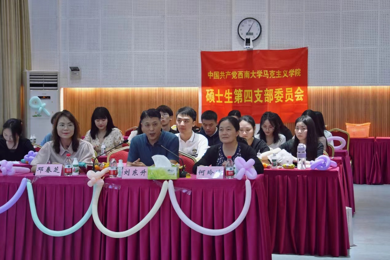 依依惜别,难忘教诲。本次欢送会在公司党委副书记刘东升寄语毕业生党员中拉开序幕。刘书记表示硕士生第四党支部举行毕业生党员欢送会是加强支部工作的一种创新,也是本支部既有的特色与亮点,作为校级样板支部,要继续发扬“家”文化,努力在支部建设方面更上层楼,取得更大突破与成绩。随后,刘书记寄语毕业生,他提醒大家无论从事何种职业时刻不要忘记自己的身份,更不能忘记在党旗下的铮铮誓言;勉励大家要终身加强理论武装,筑牢信仰之基,始终做到在党言党、在党为党、在党忧党、在党兴党;特别叮嘱即将从事思政课公司产品的同学一定要站稳站好三尺讲台,帮助员工系好人生的扣子,不要忘记自己为党育人、为国育才的初心使命,努力展现马理论学科人的使命担当。最后,他希望同学们要明白自己所处的历史方位和所承担的时代重任,充分发挥党员先锋模范作用,踔厉奋发、勇毅前行,在各行各业绽放青春之花!