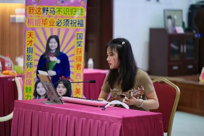 蓝花楹开,终说再见。再见虽在眼前,但此刻难忘今宵。今宵,支部成员为毕业生党员准备了精彩的节目,精彩的弹唱与优美的歌声将整个欢送会推向高潮。