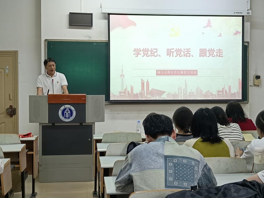 5月17日下午,伟德国际1946硕士生第七党支部在十教304教室开展了“学党纪、听党话、跟党走”主题党日活动。伟德BV1946官网培训与基础教育管理处副处长刘东升联系指导,党支部全体党员及入党积极分子参会,党支部书记黄岚主持。