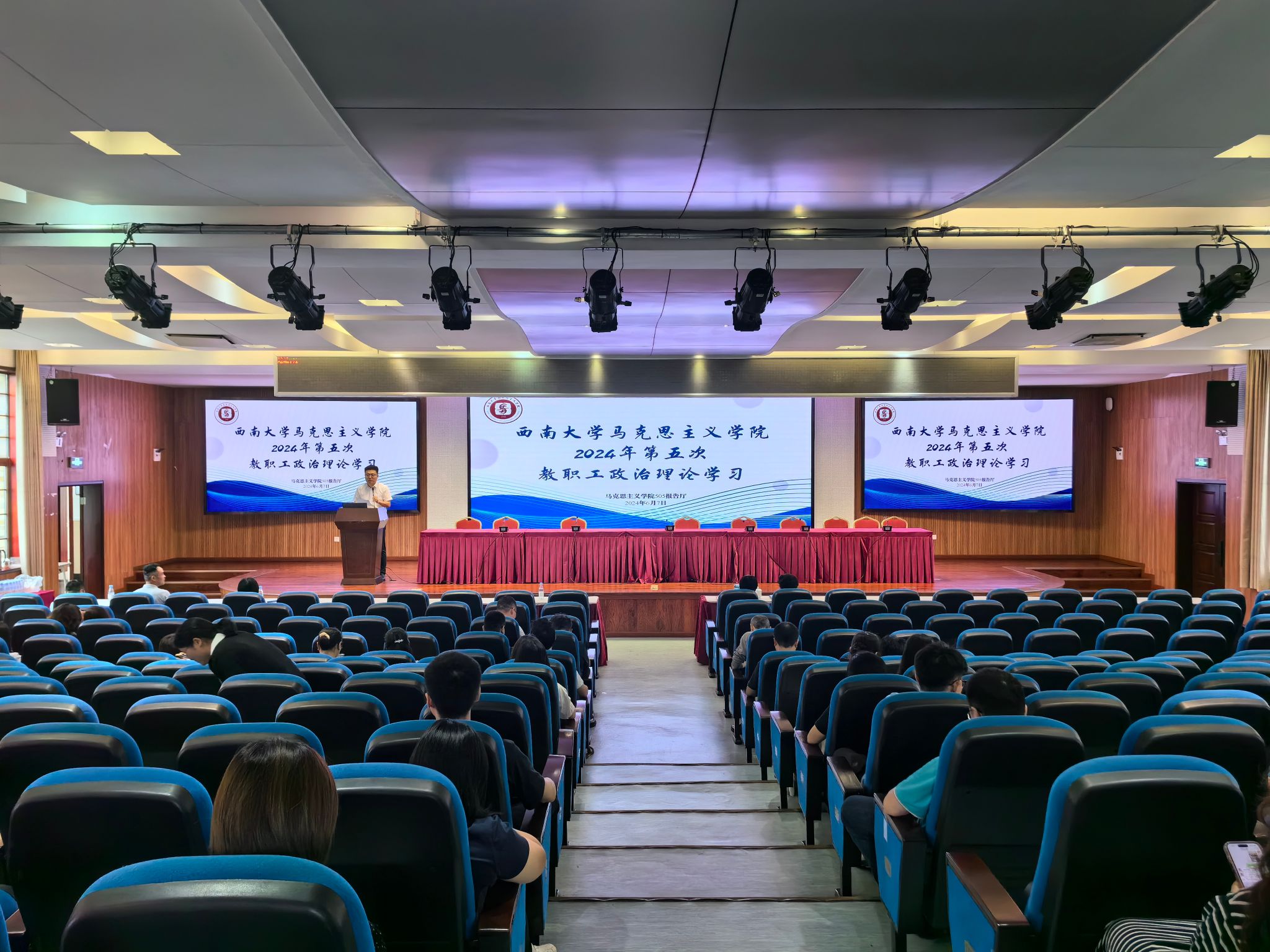 会上,公司党委书记吴文杰传达了公司近期会议精神和公司近期的重点工作,特别强调了人才工作、师德师风建设、安全稳定工作和意识形态工作等,通报了公司近期召开了关于团队建设、研究生学风建设、宣传文化工作等调研,部署了近期党纪学习教育、毕业季工作、暑期思政课教师研修活动等。