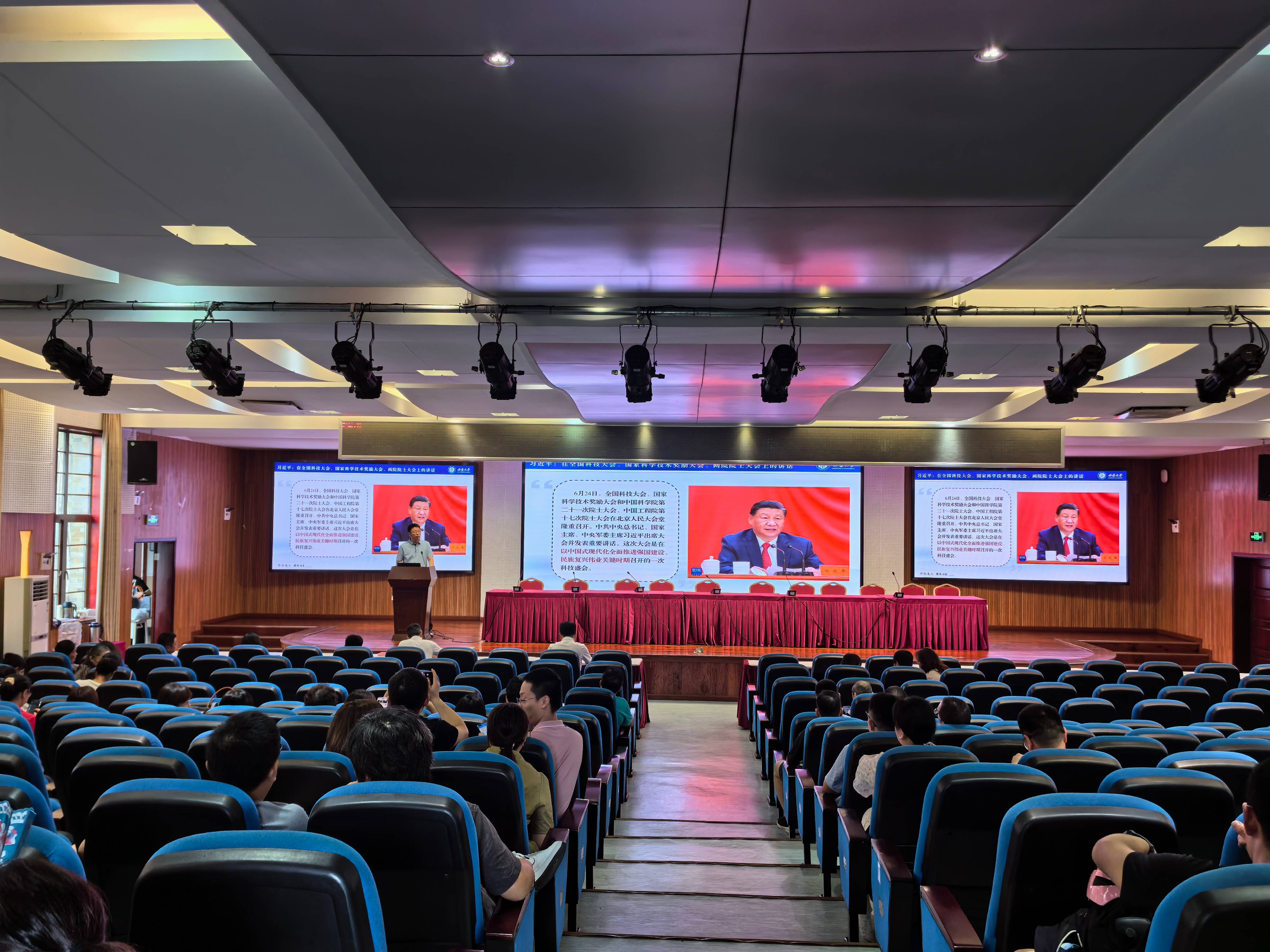 会上,靳玉军带领全体教职工集中学习了中共中央总书记、国家主席、中央军委主席习近平在全国科技大会、国家科学技术奖励大会、两院院士大会上的重要讲话精神,强调这次大会是在以中国式现代化全面推进强国建设、民族复兴伟业关键时期召开的一次科技盛会;具体围绕教2035年建成科技强国的奋斗目标,新时代科技事业发展实践中积累的许多重要经验,建成科技强国必须具备的五项基本要素,实现建成科技强国目标要从五个方面着力等方面进行细致讲解,强调高校在一体推进教育科技人才事业发展,构筑人才竞争优势要充分发挥自身作用。学习了《求是》杂志发表的习近平总书记重要文章《开创我国高质量发展新局面》,强调该文是习近平总书记2017年10月至2024年3月期间有关开创我国高质量发展新局面重要论述的节录,共22条,逐条领学。