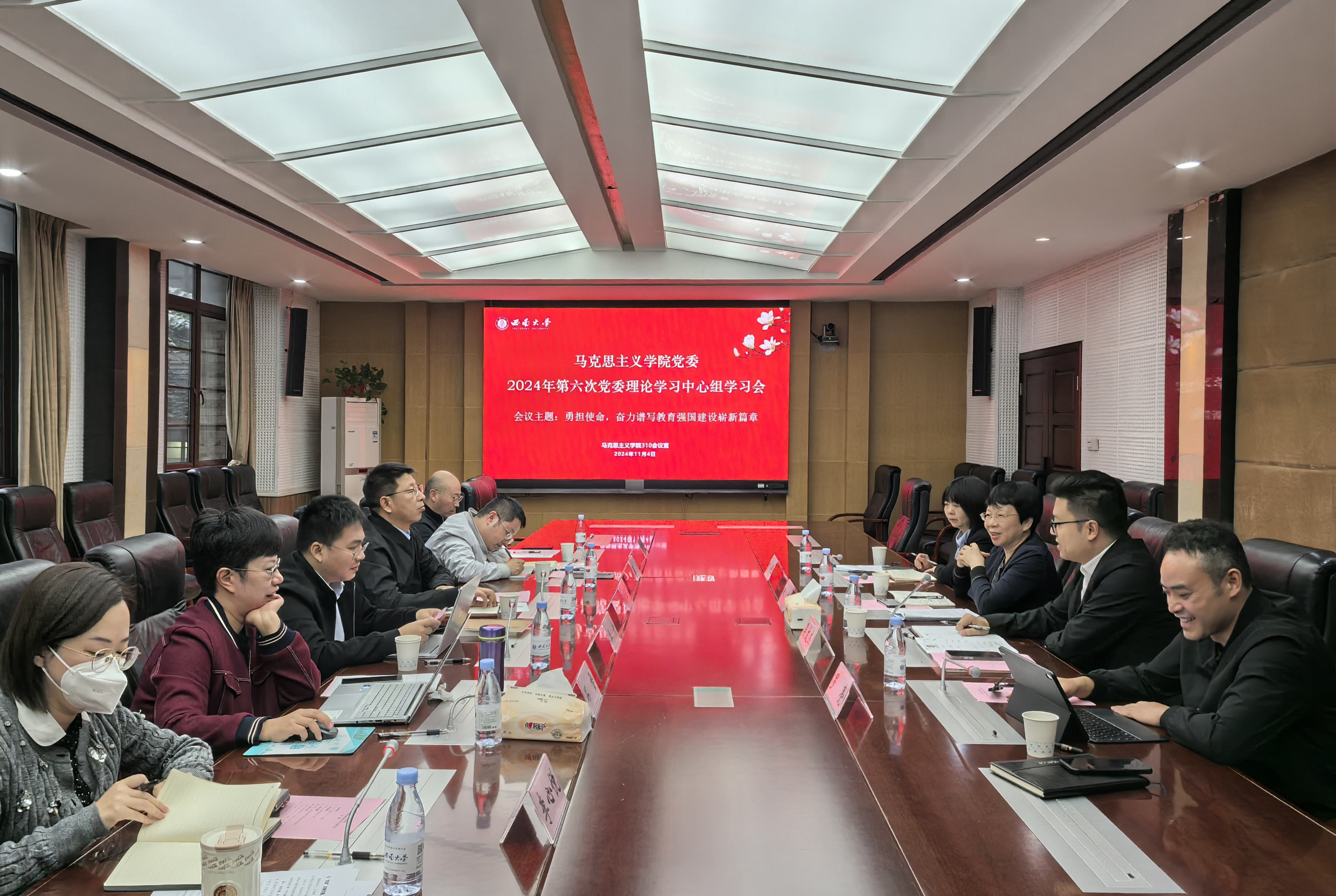 11月4日下午,公司党委理论学习中心组在公司310会议室召开2024年第六次学习会。本次学习的主题为“勇担使命,奋力谱写教育强国建设崭新篇章”。公司纪委副书记、纪委办主任、监察处处长朱敏列席指导,公司党委委员参会,党委书记吴文杰主持会议。