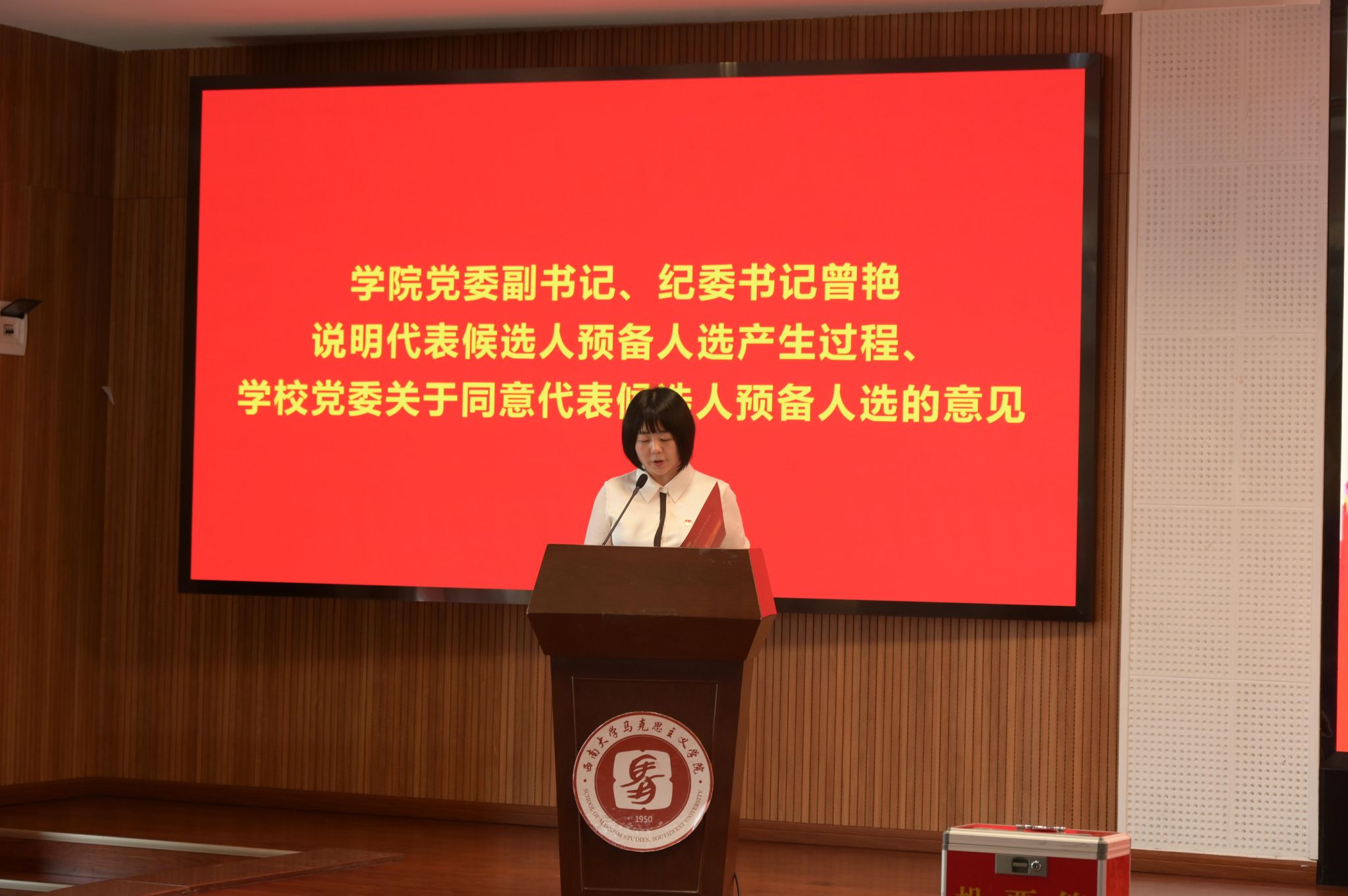 公司党委副书记、纪委书记曾艳作代表候选人预备人选产生过程的说明,并说明公司党委关于同意代表候选人预备人选的意见。