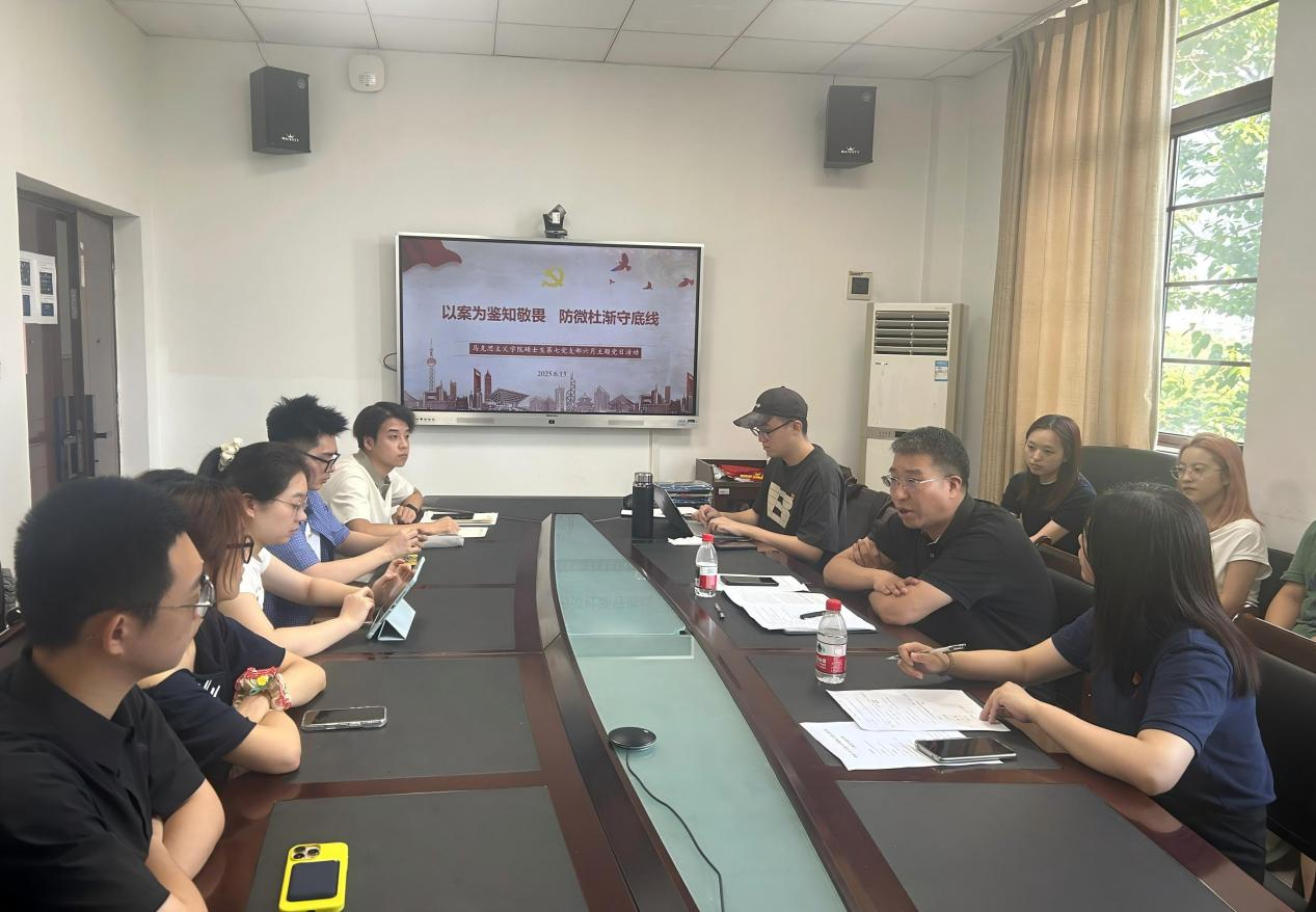 2025年6月13日,伟德国际1946硕士生第七党支部在公司319会议室开展了题为“以案为鉴知敬畏,防微杜渐守底线”的主题党日活动。校党委统战部常务副部长海克军联系指导,硕士生第七党全体党员和入党积极分子参会,活动由硕士生第七党支部书记黄岚主持。