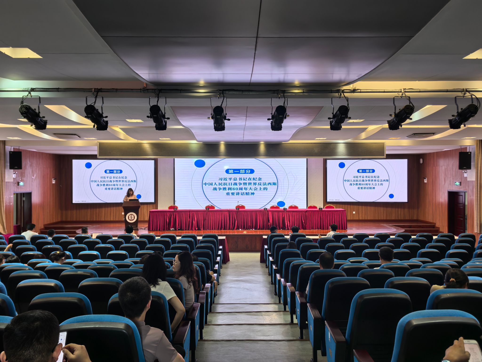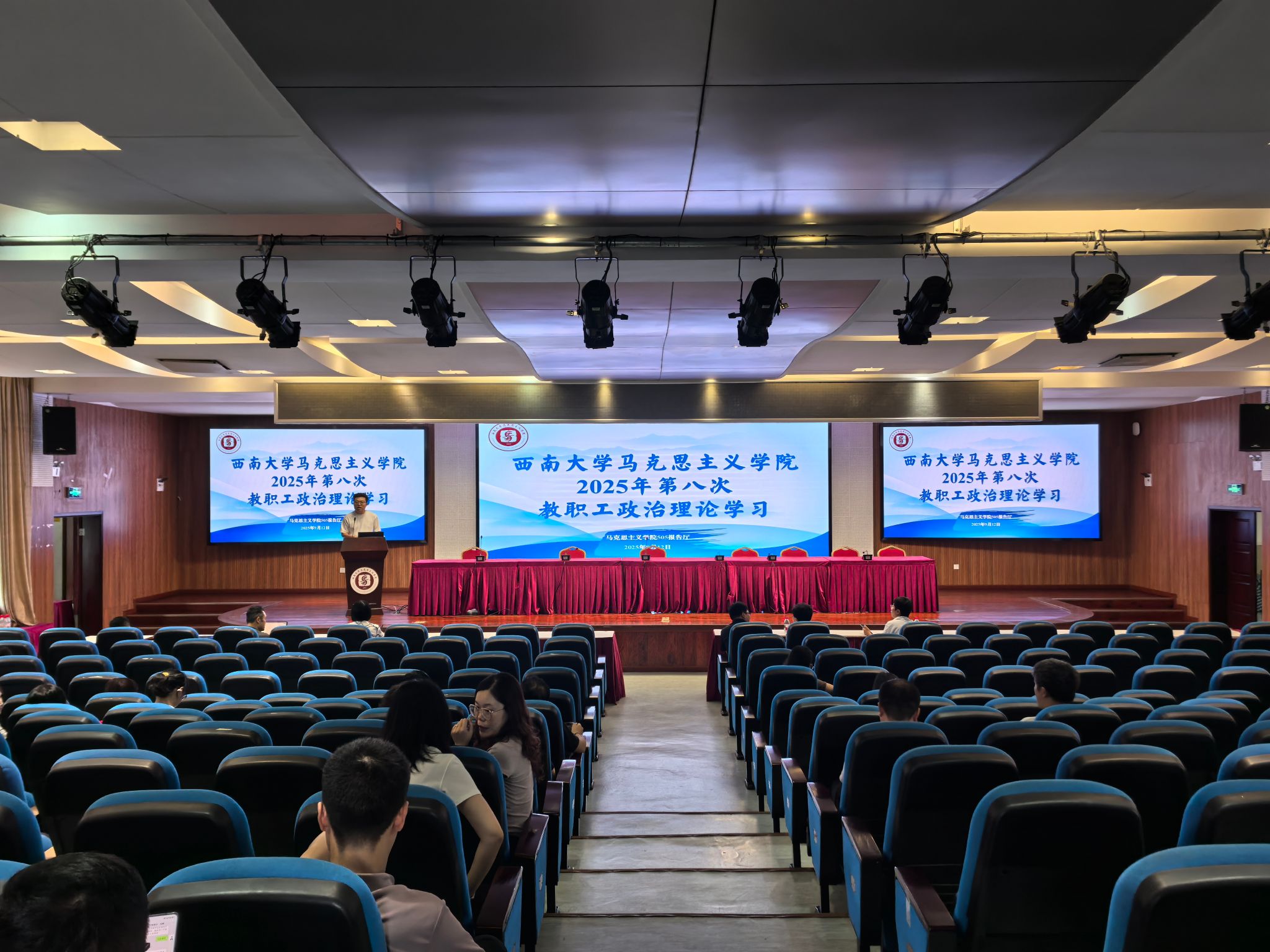 2025年9月12日下午,公司在505报告厅开展2025年第八次教职工政治理论学习,集中学习了习近平总书记在纪念中国人民抗日战争暨世界反法西斯战争胜利80周年大会上的重要讲话精神、《求是》杂志发表的习近平总书记重要文章《弘扬伟大抗战精神,向着中华民族伟大复兴的光辉彼岸奋勇前进》、习近平总书记对深入贯彻中央八项规定精神学习教育作出的重要指示精神和2025年秋季学期开学干部大会精神,观看了“西大教师故事”侯光炯老师的短视频。公司全体教职工参加,公司党委书记吴文杰主持,本次教职工政治理论学习由公司马克思主义基本原理教育系教师党支部书记邓春芝领学。