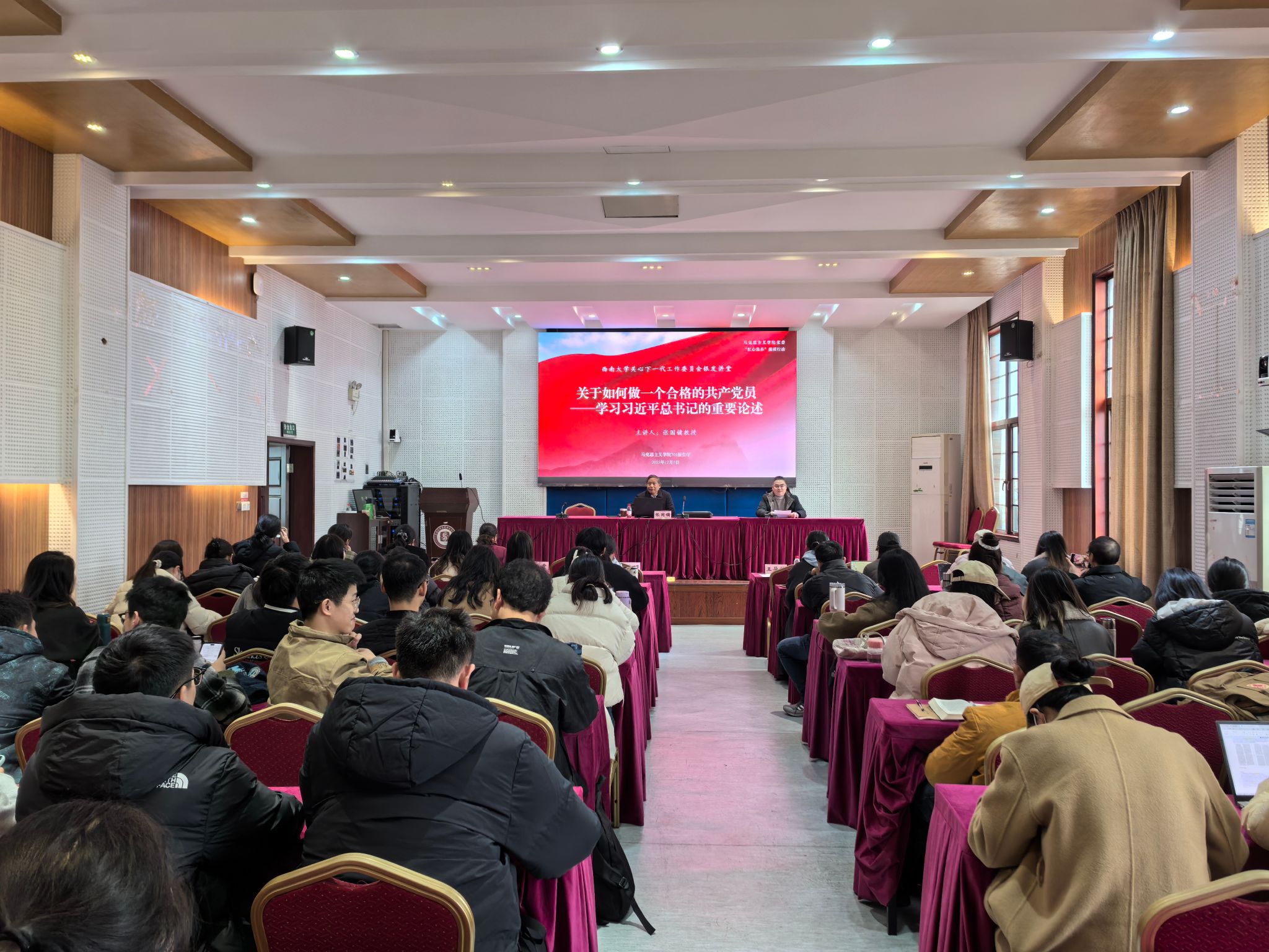 2025年12月5日14:30于公司501报告厅开展“西大红”五老服务团银发讲堂,公司退休教师张国镛教授就“如何做一名合格的共产党员——学习习近平总书记的相关重要论述”进行讲授。伟德BV1946官网关工委副秘书长、“西大红”引航服务部部长周大明、“西大红”五老服务团成员、伟德国际1946关工委副主任曾光霞副教授,公司各党支部书记和部分员工党员代表参加讲座,讲座由公司纪委书记、副处级组织员王华敏主持。