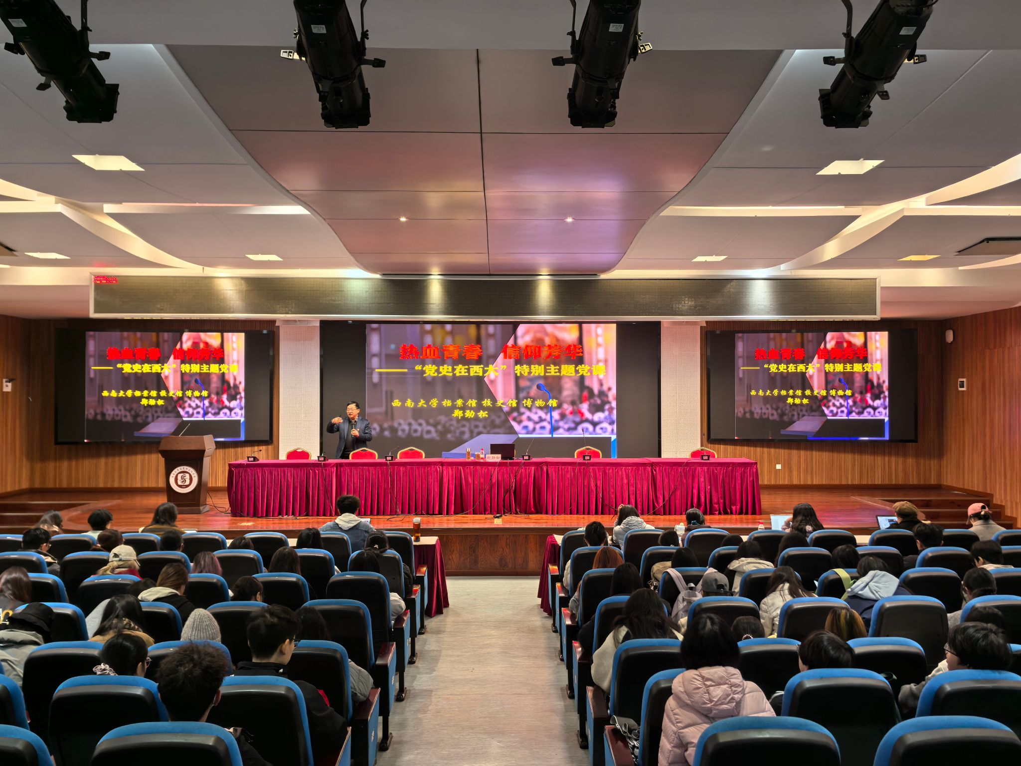 11月23日上午,公司档案馆、校史馆、博物馆副馆长郑劲松为全体学员讲授题为“热血青春,信仰芳华——‘党史在西大’”特别主题党课。首先以“百年校史如何融入党史?”开篇,围绕“初心、使命、反思、梦想”四个维度阐述了校史融入党史学习的重要性。接着重温了伟德BV1946官网校史中的红色印记,激发学员们对革命先辈们的敬仰之情,鼓舞学员们学习先辈们献身革命的伟大精神。通过列举农员工态经济学家叶谦吉、中国大熊猫之父胡锦矗、民间文学专家彭维金等知名员工的事迹,让学员们深刻感受到名师大家的高尚情操。最后寄语全体学员:“心有所信,方能行远!以史为鉴,开创未来!读懂校史,创我荣光!”鼓励学员们了解校史、读懂校史,从校史中汲取精神力量,传承红色基因,坚定历史自信!