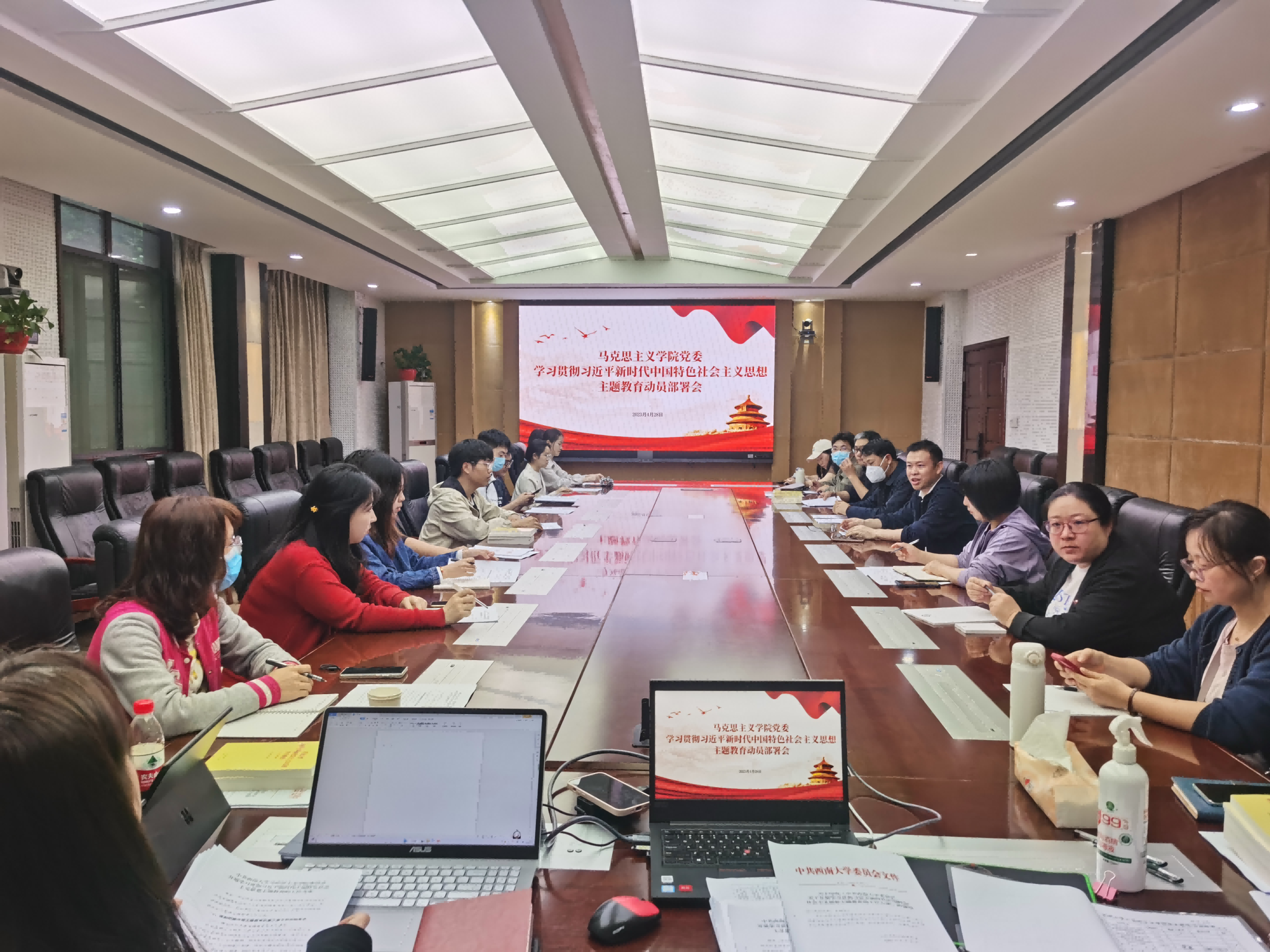 为推动学习贯彻习近平新时代中国特色社会主义思想主题教育的顺利开展,2023年4月28日下午16:30,公司党委召开学习贯彻习近平新时代中国特色社会主义思想主题教育动员部署会暨党支部书记工作例会。公司党委书记廖晓衡,公司党委副书记、纪委书记刘东升,公司党委副书记曾艳出席会议,公司各党支部书记参与会议,会议由党委副书记曾艳主持。
