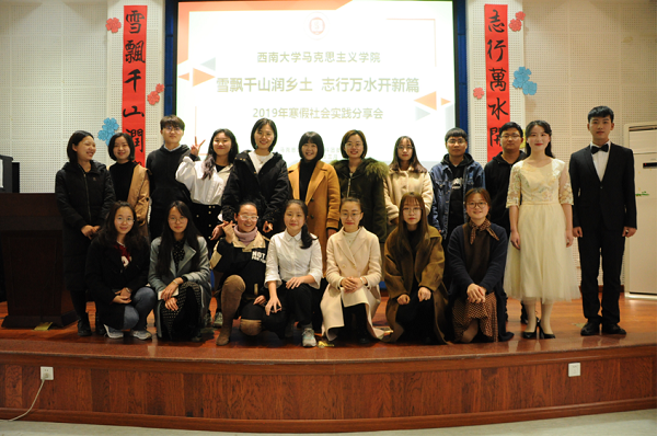 为给马院学子提供一个分享寒假社会实践的经验交流的平台,让同学们领悟更多实践方面的知识,公司特于3月22日下午3点举办了“雪飘千山润乡土,志行万水开新篇”2019年寒假社会实践分享会。公司党委副书记曾艳老师、团委书记李心悦老师、2017级辅导员王珏老师、2017级实习辅导员李康老师、2018级实习辅导员杜星老师和各年级实习辅导员、各兄弟公司社会实践部部长以及本科17、18级部分同学参与了此次分享会。