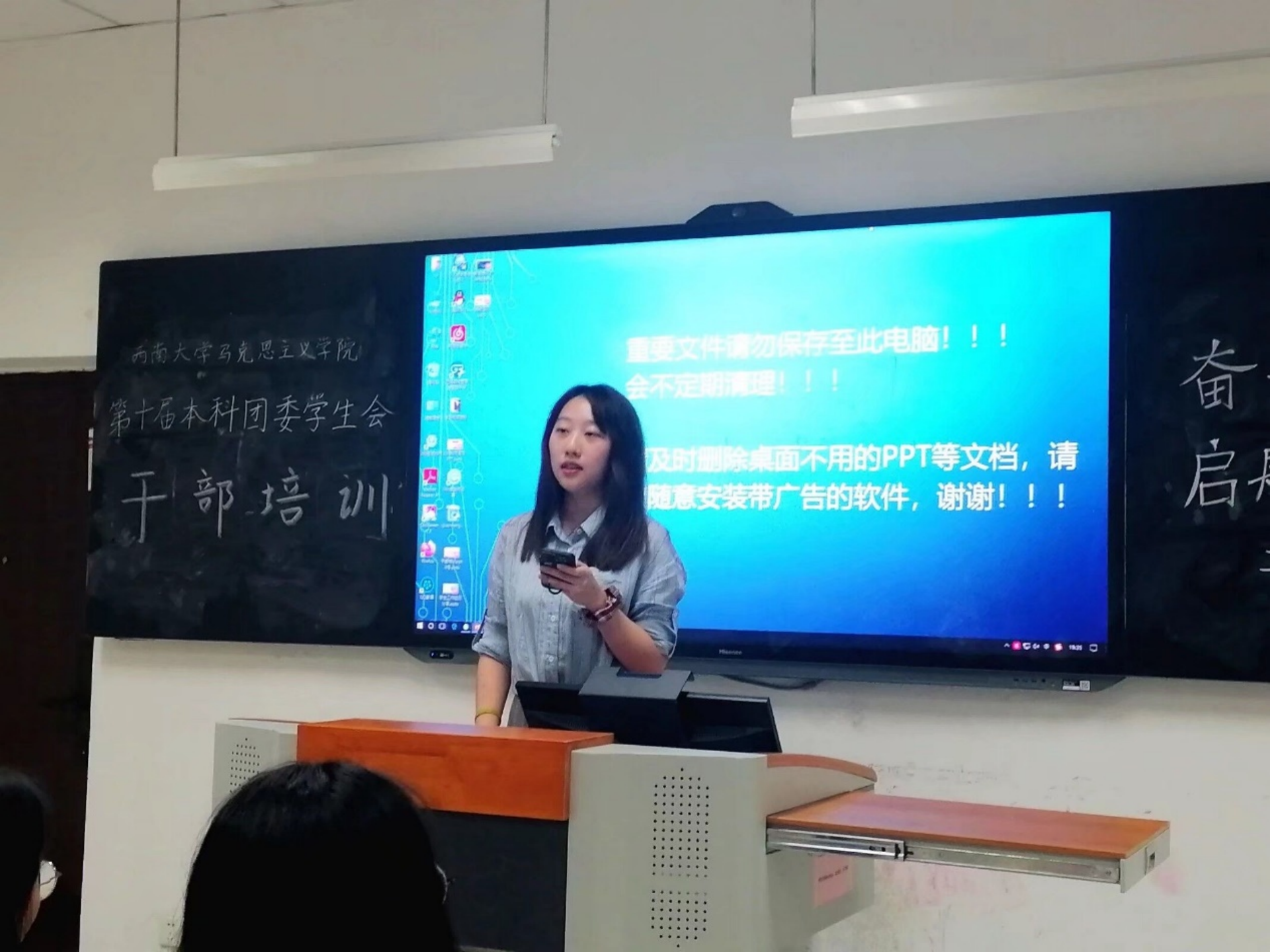 首先张嘉怡同学向大家分享了自己在校团委组织部担任负责人的经历,并且提出了担任团的骨干所需要的做法,张嘉怡同学指出,作为员工骨干,首先要摆正心态,调整思想,做好为同学服务的准备和觉悟,树立坚决的责任意识,其次要协调时间,量力而行,学会合作和分担,不影响学习生活和正常休息。最后,张嘉怡同学强调,要时刻保持一颗谦虚谨慎,积极向上的学习心态,通过团学组织提供的更高平台提升自己的能力,扩展自己的领域,大家深感认同,现场掌声雷动。
