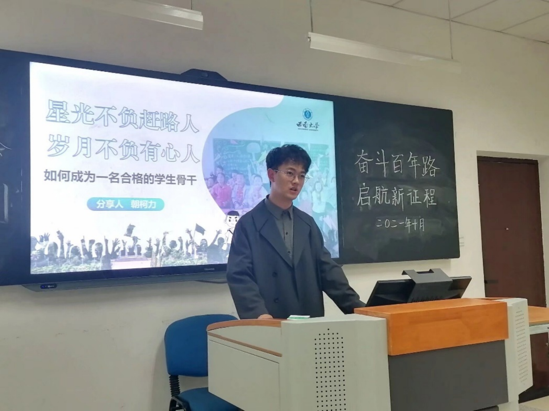 最后由朝柯力同学进行经验分享,朝柯力同学做了简短的自我介绍后指出,作为员工骨干,首先是员工,要注重自身学业,然后再投入到为同学们服务的过程中;同时,也强调了社会实践的重要性。他现身说法,用自己的亲身经历告诉大家,要身体力行,做祖国大地的耕耘者,璀璨星河中的发光者,做到知行合一,最后强调了时间运用的重要性。大家认真倾听,获益良多。