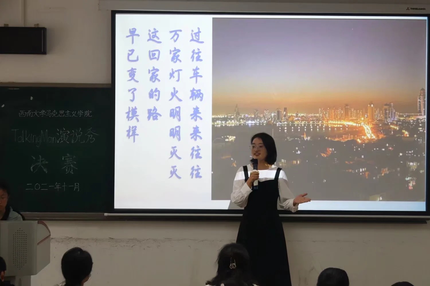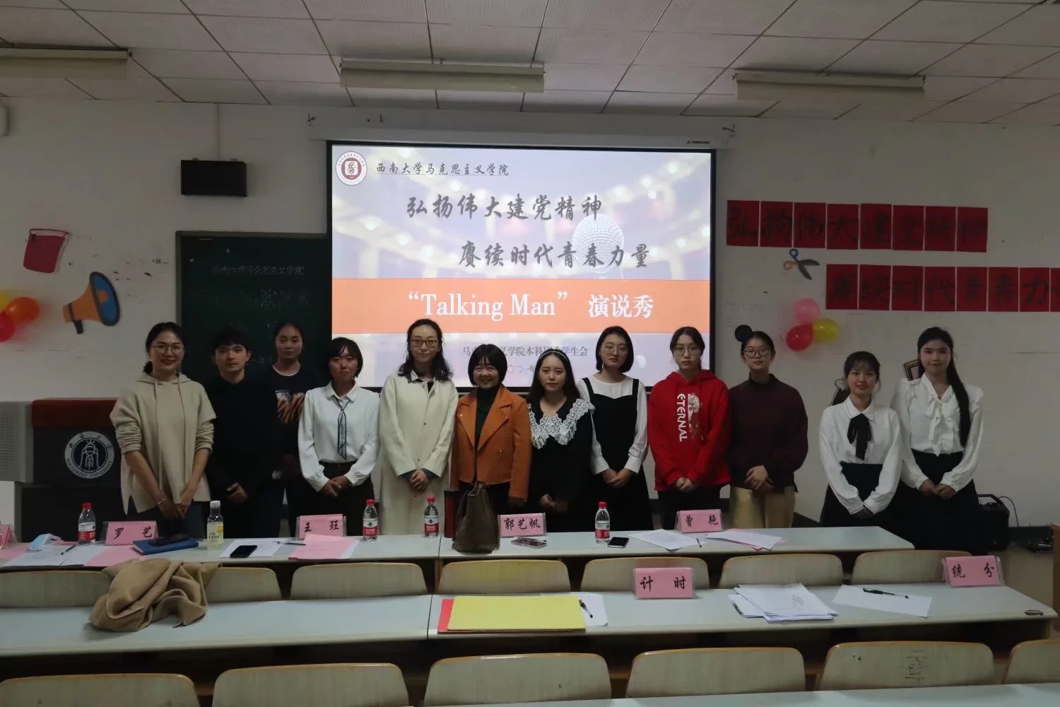本次以庆祝百年华诞,加强党史学习教育为目的的“Talking Man”演说秀圆满结束。通过此次决赛我们更加深刻的了解了党史,坚定了自己的理想信念。选手们锻炼了自己,提升了自己关于演说这一方面的能力。最后祝选赛人员更加努力成为真正的“Talking Man”!