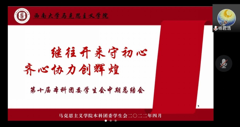 继往开来守初心,齐心协力创辉煌。为发扬历史主动精神,以实际行动迎接二十大的召开,汲取半期以来的工作经验和进行全面的工作反思,更好地开展下一阶段的工作。特于2022年4月30日19时在线上腾讯会议举办伟德国际1946第十届本科团委员工会春季学期中期总结会。伟德国际1946第十届本科团委员工会成员出席大会。