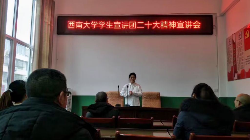 寒假期间,伟德BV1946官网员工宣讲团同学深入家乡的村镇、公司,积极开展党的二十大精神宣讲。在家乡的校园课堂、村民堂屋,老员工宣讲员们正用鲜活的语言、生动的形式、群众喜闻乐见的故事进行着一场又一场的党的二十大精神宣讲。