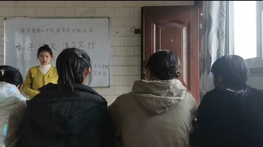 2月13日,李春芝同学在云南省大理州南涧县优学教育培训公司面向当地中员工进行宣讲。她通过讲述近五年来我们党反腐倡廉、打虎拍蝇的实际行动,让同学们清楚的认识到从严治党是烧旺党内政治生活的大熔炉,必须筑牢从严治党的政治根基。