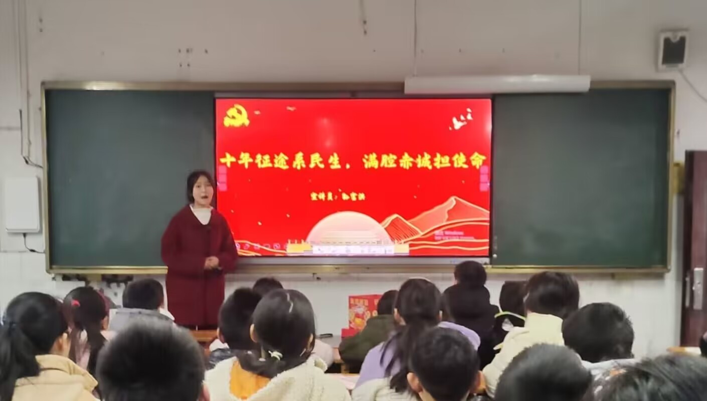 孙富洪同学在重庆市石柱县南宾镇华丰小学向六年级二班员工宣讲,在讲到中共党员“绝壁愚公”毛相林的故事时,有的员工甚至感动落泪,在宣讲结束后热烈鼓掌。相信此次宣讲已在他们的心中埋下一颗名为“人民”的种子,终会在未来生根发芽,茁壮成长。
