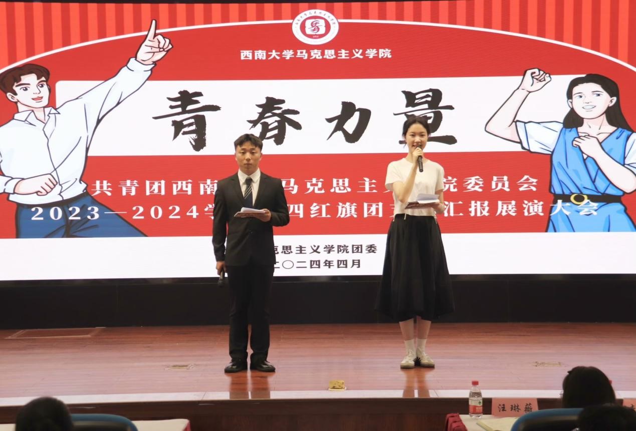 参评各支部独具匠心,用专业知识联系实际,紧扣国家时事,将两会精神与五四精神融入支部日常建设中,并创新性地运用多元化手段全面呈现支部文化与精神风貌。汇报展示环节,22级思政一支部(师)推陈出新,通过特色展板展现本学年支部的建设情况、荣誉成就和未来规划;答辩环节,22级思政三支部(师)据题结合两会新热词“新质生产力”阐述团支部在日常管理方面中的创新方式;风采展示环节,23级马理论支部将歌曲与书法表演相融合,展现出新时代马院学子昂扬向上的青春风采。各团支部精彩纷呈的表现,赢得了在场观众的阵阵喝彩与热烈掌声。
