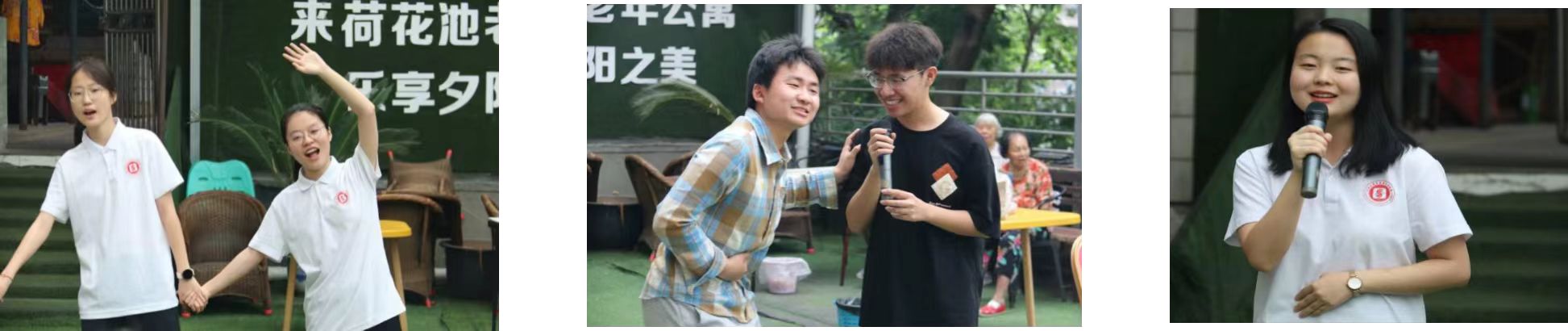 来到敬老院后,6支志愿小组首先为老人们表演了精心准备的节目。节目内容丰富、形式多样,有活力满满、轻松欢快的歌舞表演,欢乐有趣的小品表演。精彩的表演赢得了爷爷奶奶们热烈的掌声,许多爷爷奶奶也和志愿者们一起唱一起跳,脸上洋溢着快乐、幸福的笑容。