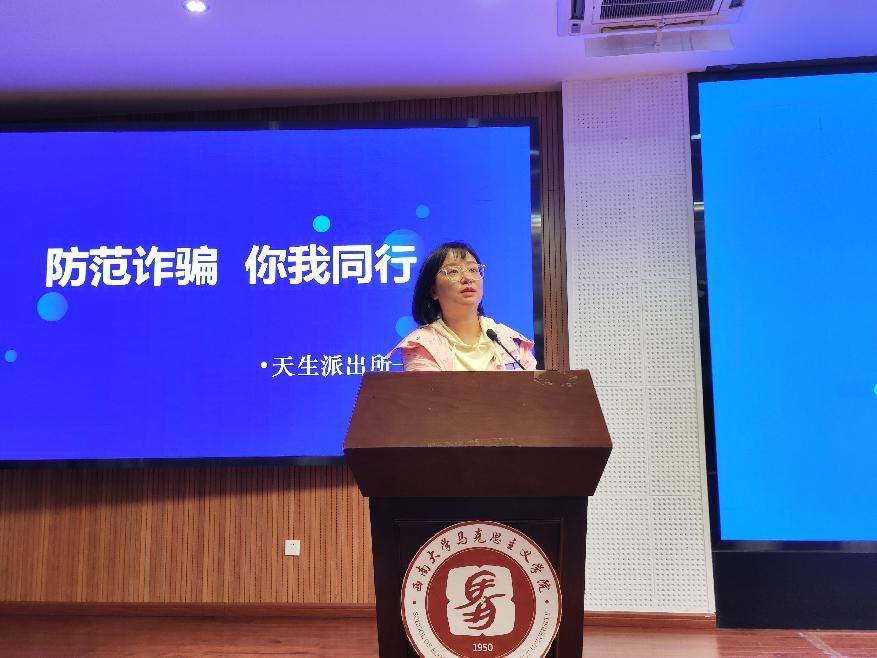 为进一步增强员工的反诈意识,11月15日,公司本科2023级开展了“防范诈骗,你我同行”主题年级会。此次年级会由年级辅导员吴克瘟主持,天生派出所吕克锋警官主讲,2023级全体同学参与学习。