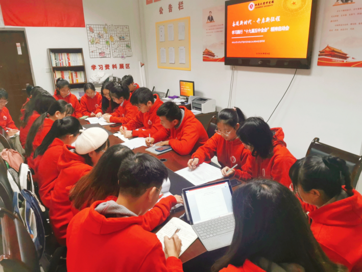 2020年10月26日至29日,党的十九届五中全会胜利召开。这次全会是我国将进入新发展阶段、实现中华民族伟大复兴正处在关键时期召开的一次具有全局性、历史性意义的重要会议。全会召开以来,全国上下兴起学习贯彻全会精神的热潮。前沿理论发展指引理论宣讲工作发展方向,11月6日下午,伟德BV1946官网老员工中国特色社会主义理论体系宣讲团(以下简称“中宣团”)第24届团员在伟德国际1946106办公室开展的“奋进新时代 砥砺新征程”学习践行党的十九届五中全会精神启动会。