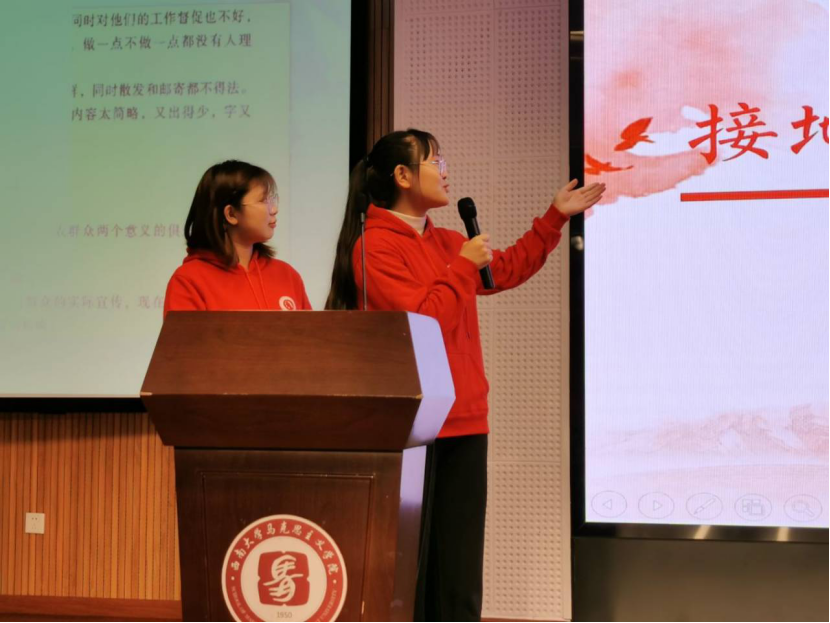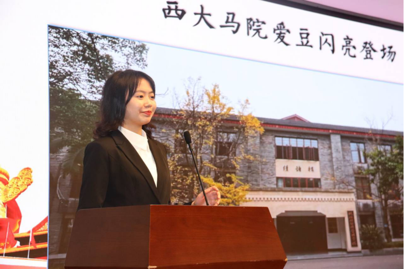 活动伊始,宣讲员江雨纾以饱满的热情讲述了最强爱豆西大马院哥哥不断练习最终成功出道的故事,即马院从开设学科到不断调整再到最终成立的历程。小马们的心情随着其中辉煌的成果与短暂的挫折而起伏,也对马院丰富的历史有了更加生动而深刻的理解。