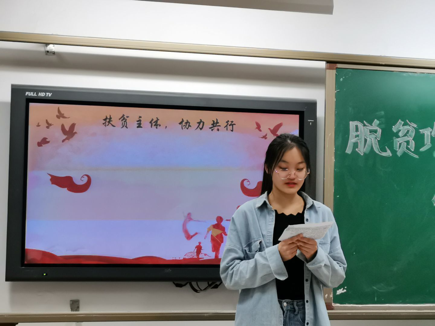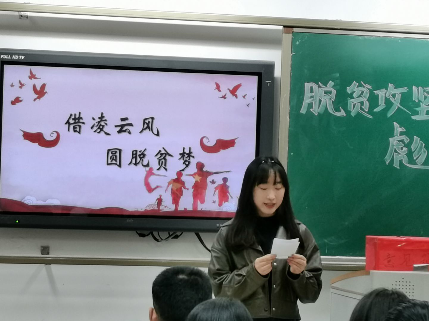 观看完视频后,活动进入到了第二环节“借凌云风,圆脱贫梦”。本环节由三位讲解员从26个字母出发,分别从领域、方式和主体三个角度为大家解读脱贫攻坚的制胜密码。首先,团员石萌为大家着重讲解了教育扶贫和科技扶贫两个重点领域,让大家感悟到脱贫攻坚战中科技和教育在治穷与治愚中发挥出的强大力量。