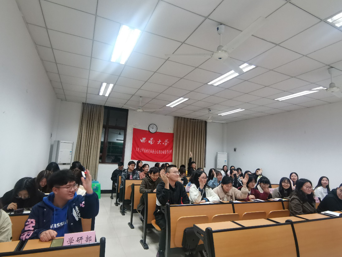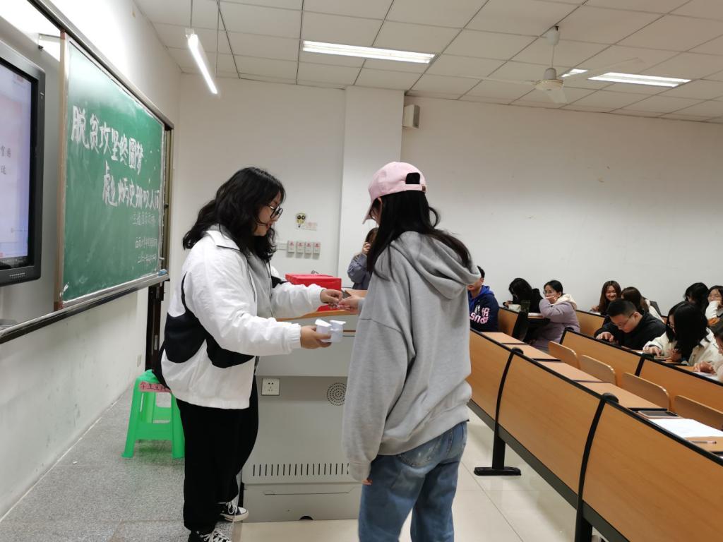 在干货满满的学习氛围中,我们本次团日活动迎来了最后一个环节“脱贫攻坚,你我同行”有奖竞答。在本环节负责人江雨纾的引导下,团员们积极参与抽签抢答,更加深入了解了脱贫攻坚相关知识,增强了团员们的文化自信。