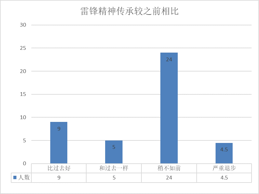 时代更迭,世纪翻新,而薪火不断。在新时代的背景下,我们仍然需要对雷锋精神进行传承与发扬。通过本次问卷调查,中宣团将根据团员们的实际情况开展学雷锋活动,更好且更深入地让团员们认识到雷锋精神的内涵,并在实际生活中传承发扬。
