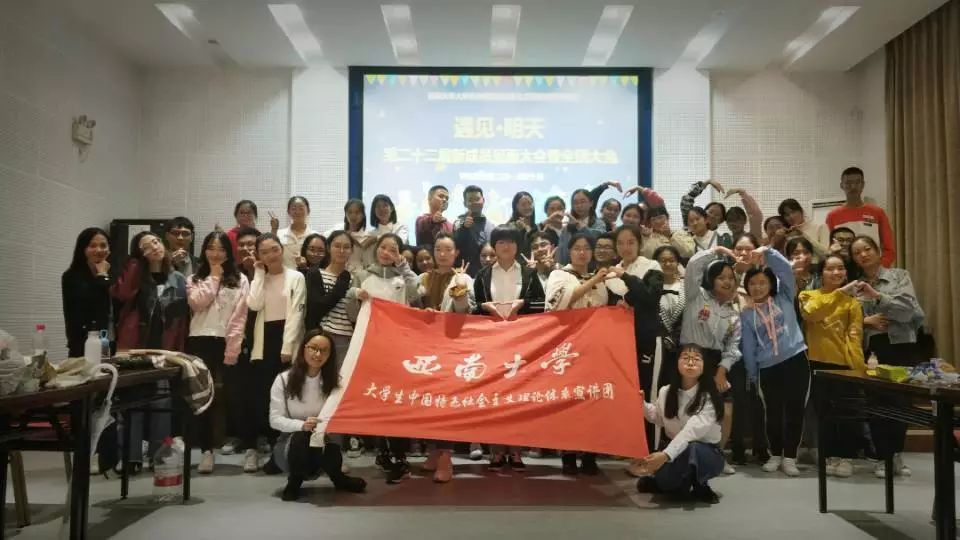 遇见。经过高考,遇见西大。经过马院,遇见宣讲团。相识于九月,相聚于十月。来自四海八荒的团员们将在以后的工作中,互相学习,互相交流,互相进步。员工宣讲团的团员们一定能扛起大旗,继续奋斗,继续拼搏。