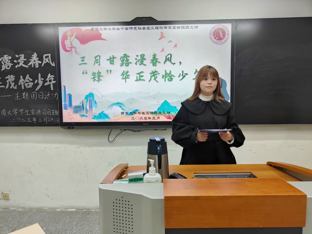 三月春风处处暖,雷锋精神代代传。为积极弘扬雷锋精神,进一步培育、践行社会主义核心价值观,引领全体团员领悟雷锋精神内涵并激励团员们投身于社会实践,伟德BV1946官网老员工中国特色社会主义理论体系宣讲团团支部(以下简称“员工宣讲团团支部”)于323日在伟德国际1946研究生教室一特举办了三月甘露浸春风,华正茂恰少年主题团日活动。