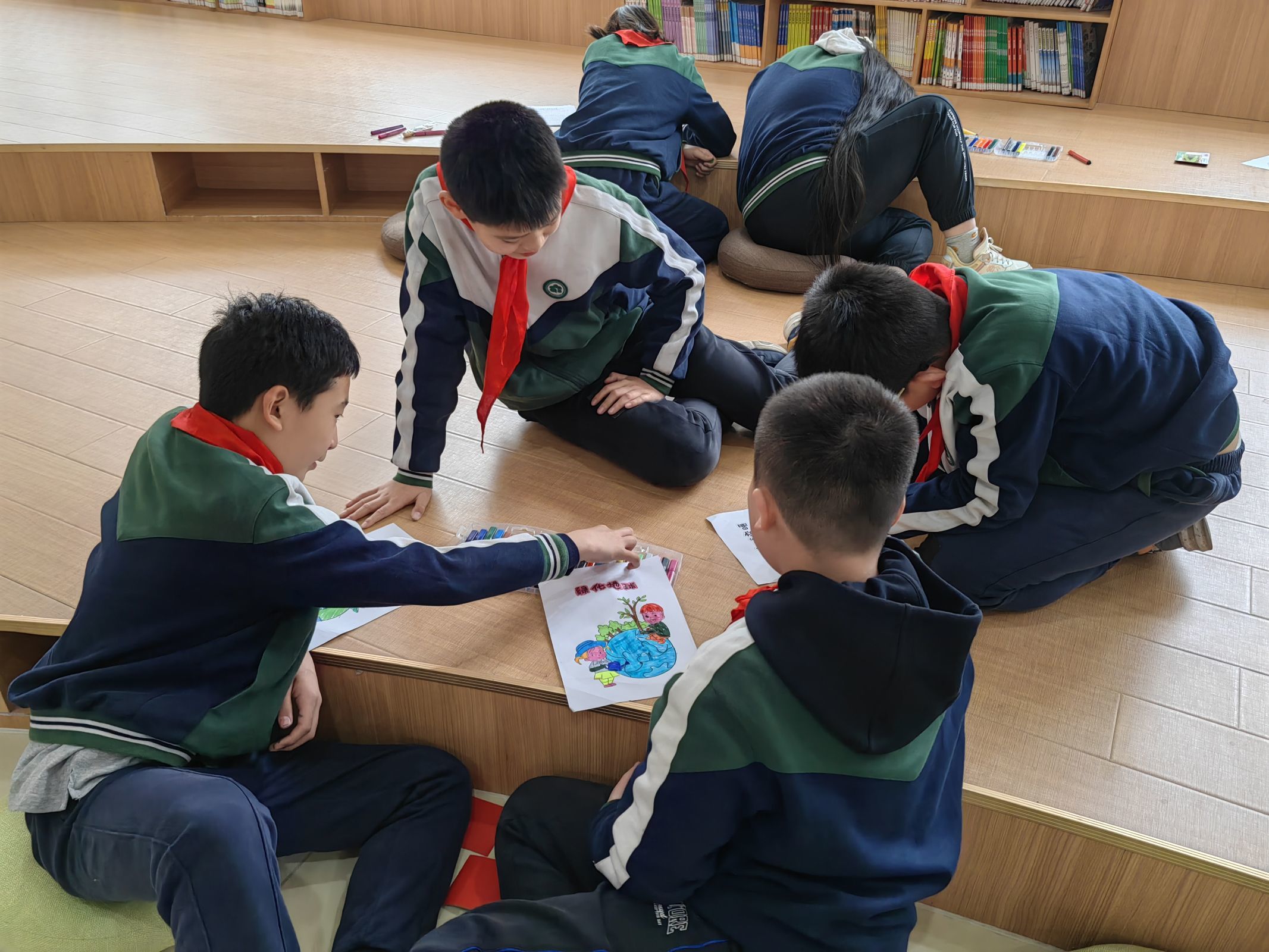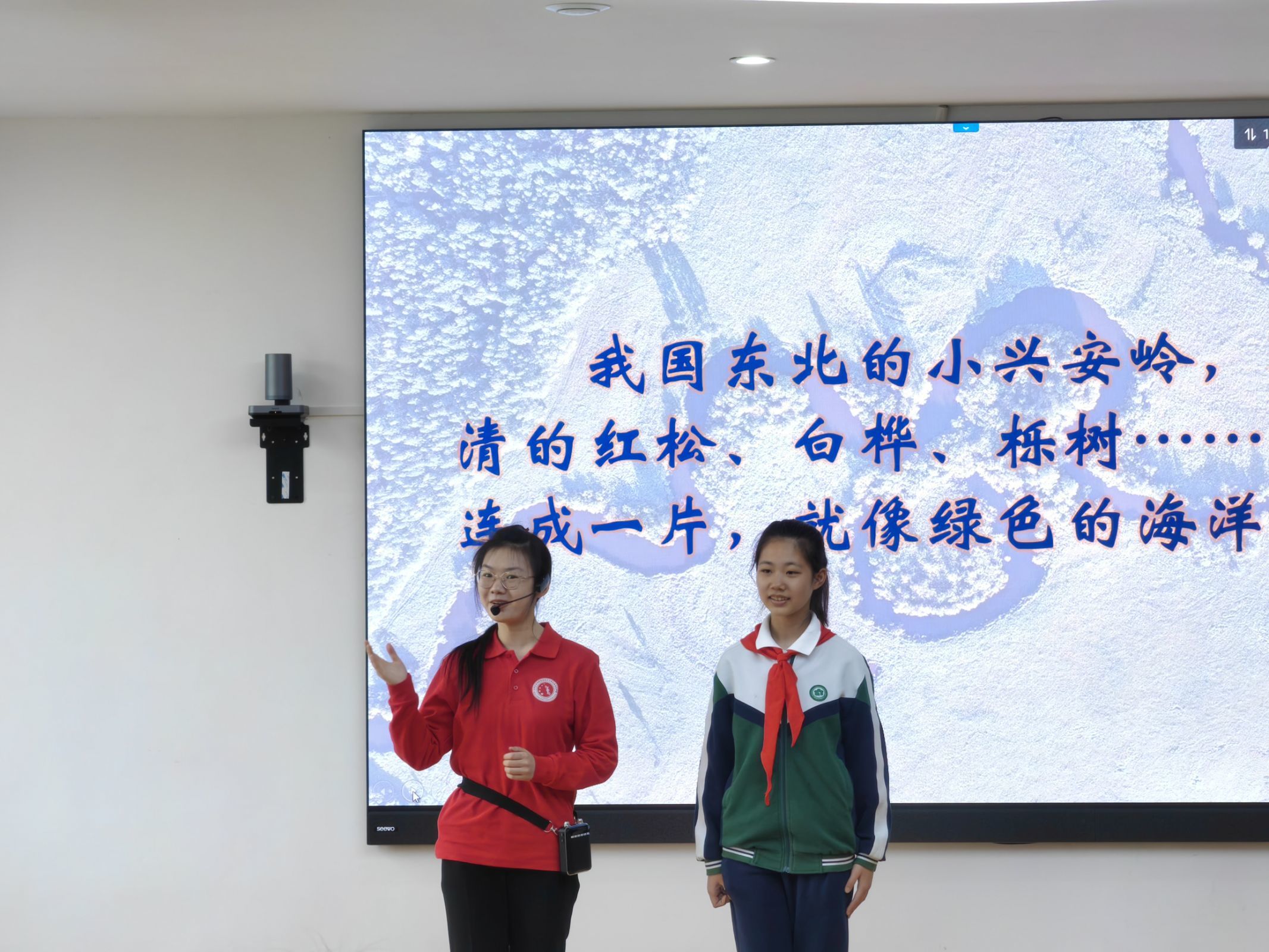 绿色发展篇《以绿色低碳之涓滴,绘壮美磅礴之山河》开篇以课文导入并联系自身实际,李溪和李沛芸让同学们在塞罕坝荒漠变绿洲的故事中领会到绿色发展的重要意义。
