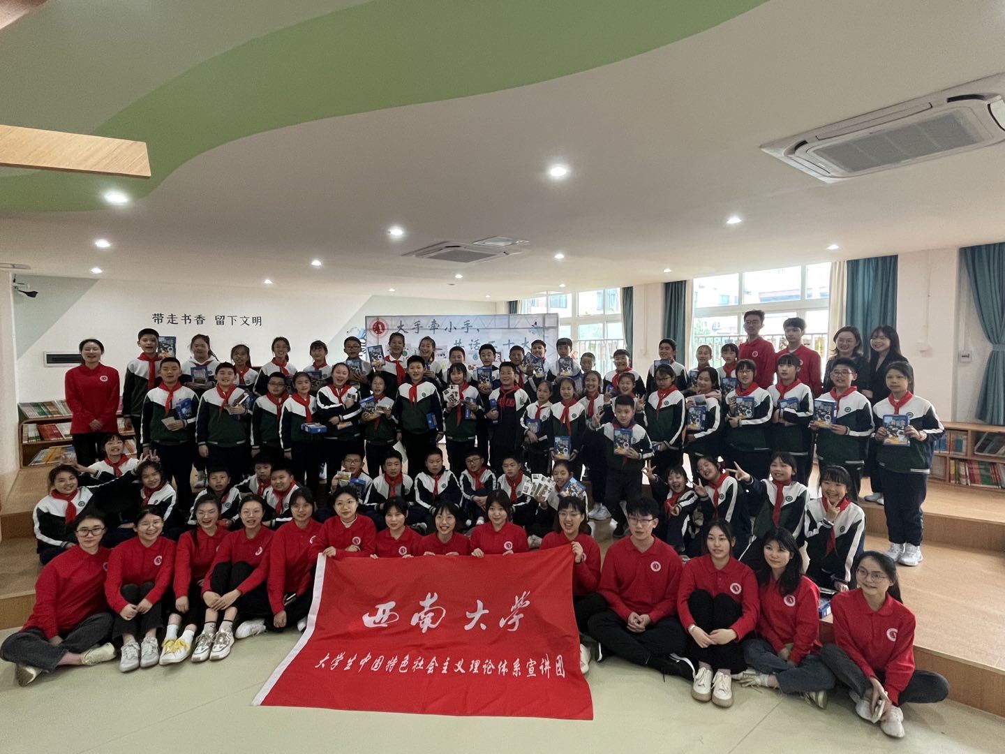 汲取精神伟力,共绘时代画卷。党的二十大报告明确指出,新时代要“用社会主义核心价值观铸魂育人,完善思想政治工作体系,推进大中小学思想政治教育一体化建设”。为响应党的号召,弘扬党的二十大精神,培育时代新人,伟德BV1946官网老员工中国特色社会主义理论体系宣讲团(以下简称“员工宣讲团”)于2023年4月7日(星期五),在伟德BV1946官网附属小学(以下简称“附小”)开展“大手牵小手,共话二十大”主题宣讲活动。