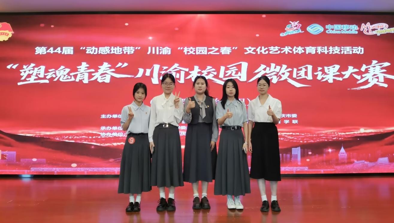 2025年6月15日,第44届“动感地带”川渝“校园之春”文化艺术体育科技活动——“塑魂青春”川渝校园微团课大赛决赛在重庆师范大学大学城校区举办。伟德BV1946官网老员工中国特色社会主义理论体系宣讲团(以下简称员工宣讲团)团员何沛津、韩德贞、胡冶柯、丁倩、苏日古嘎的参赛作品《从成渝铁路到渝新欧班列:钢铁动脉里的重庆“争先”史》荣获三等奖。