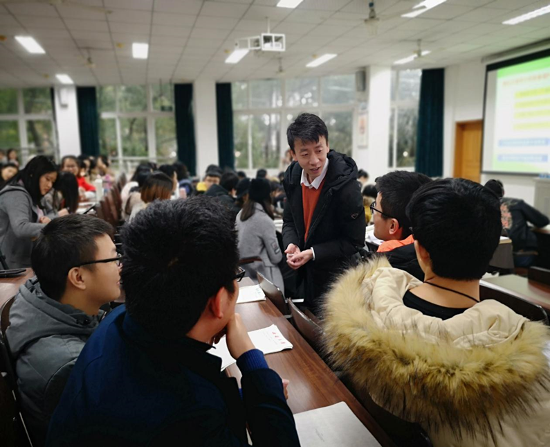 第二场基础教育名师论坛于2018年12月26日10:30在第27教学楼201教室举办。来自重庆一中的周雄老师用“爱心诊室”里王昊同学的案例贯穿课堂,并以幽默视频深入推进道德与法治这一课题的讲解,极大地激发听众的兴趣。在教学过程中,他注重对员工自主性学习能力的培养,极富逻辑性的推理促进员工对精神追求高于物质追求的深入理解。课堂内容贴近生活,知识讲解形象生动。