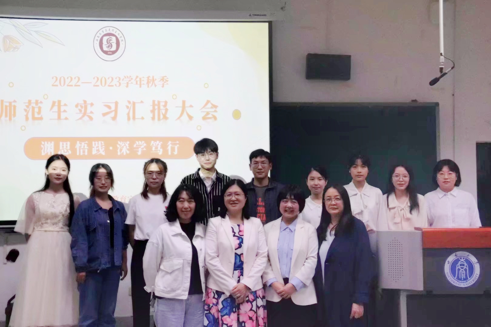 10月22日晚上19:00,公司“渊思悟践·深学笃行”2022-2023学年秋季师范生实习汇报大会于第二十七教学楼204教室顺利举行。出席活动的嘉宾有教师教育公司陈亮老师、李晓娟老师、李怡明老师、胡白云老师,公司党委副书记曾艳老师。公司本科2019级师范生代表、本科2020级师范生以及未协全体成员参加本次活动。