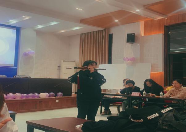 思政会各个部门相互协调,积极展开布置教室、宣传组织、练习表演等各类会前筹备工作,确保活动正常举行。在本次活动中,首先由主持人报幕并宣布大会正式开始,再由主席团代表及嘉宾致辞。随后,各项表演节目也如火如荼地展开了:主席团陈一嘉表演的街舞《dance in the light》、宣编部的合唱《一笑倾城》、思研部带来的《歌曲串烧》、外联部的巴乌独奏《时间都去哪了》以及歌曲《有点甜》、办公室的朗诵及合唱《声声慢》、活动部的《潮流之辈》。各项表演丰富多彩,精彩纷呈,各部门在节目中展现出多样的才艺和良好的风貌,给我们带来了一场视觉盛宴的享受,使大家印象深刻,回味无穷。