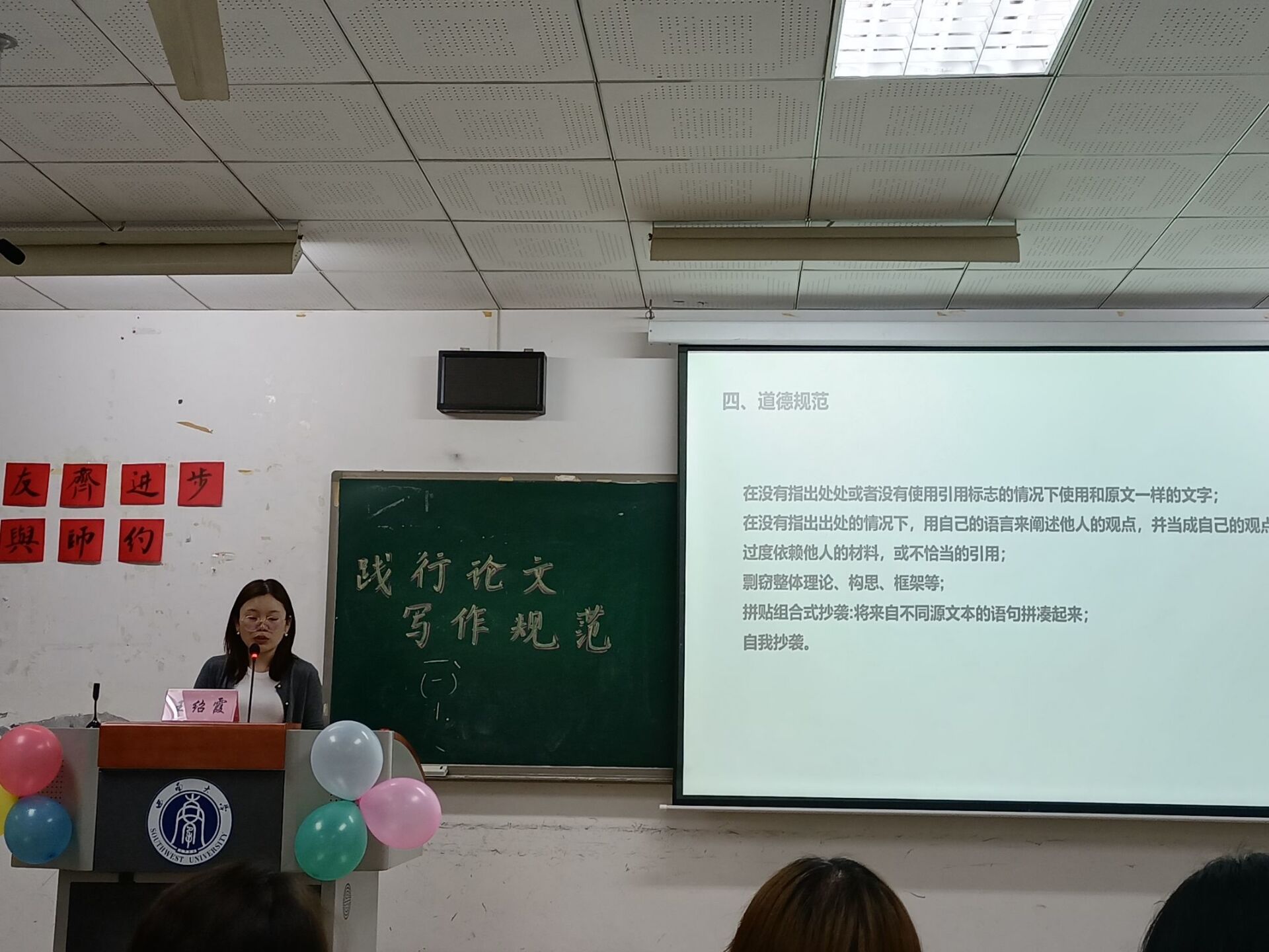 首先,在嘉宾分享环节,王绍霞老师就结构规范、话语规范、引用规范及道德规范四方面给我们带来了一堂内容详实生动的论文小课堂。