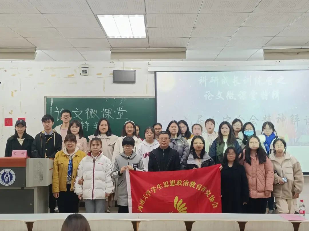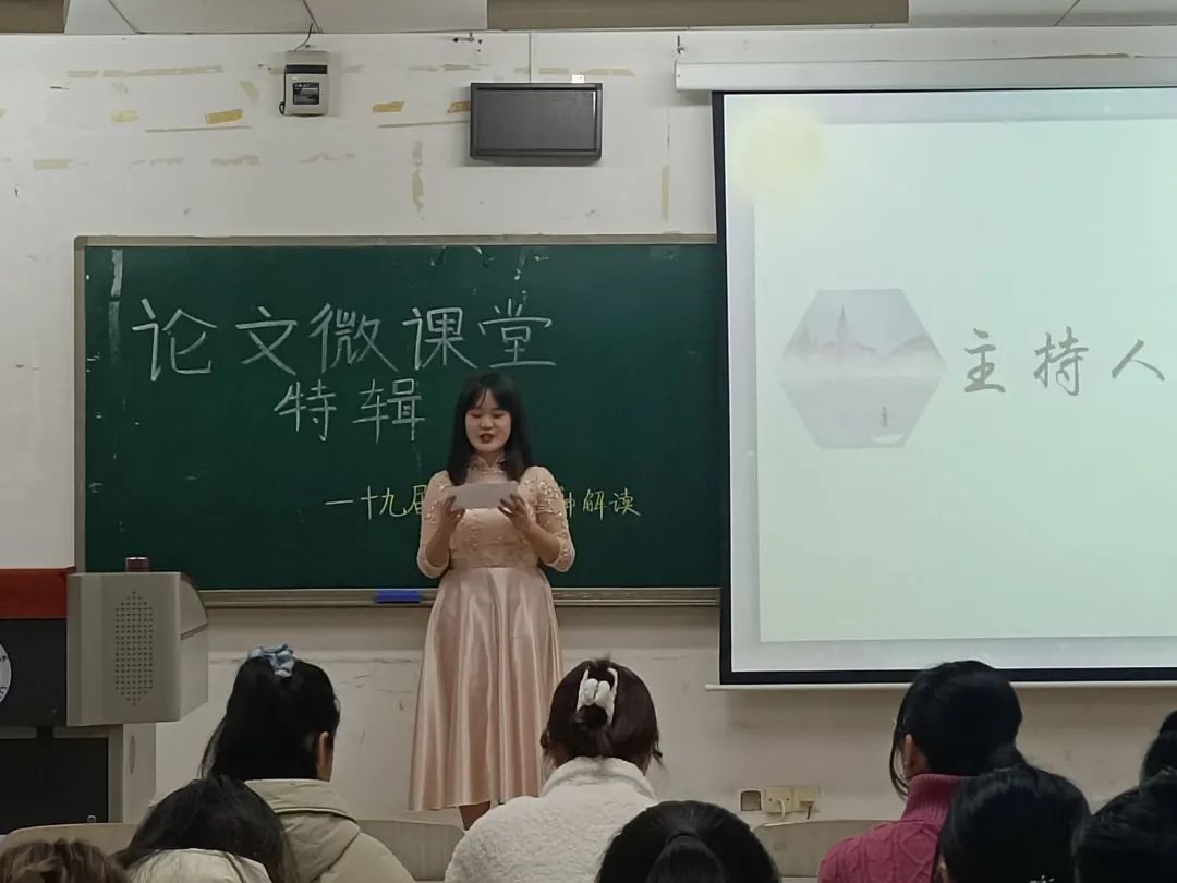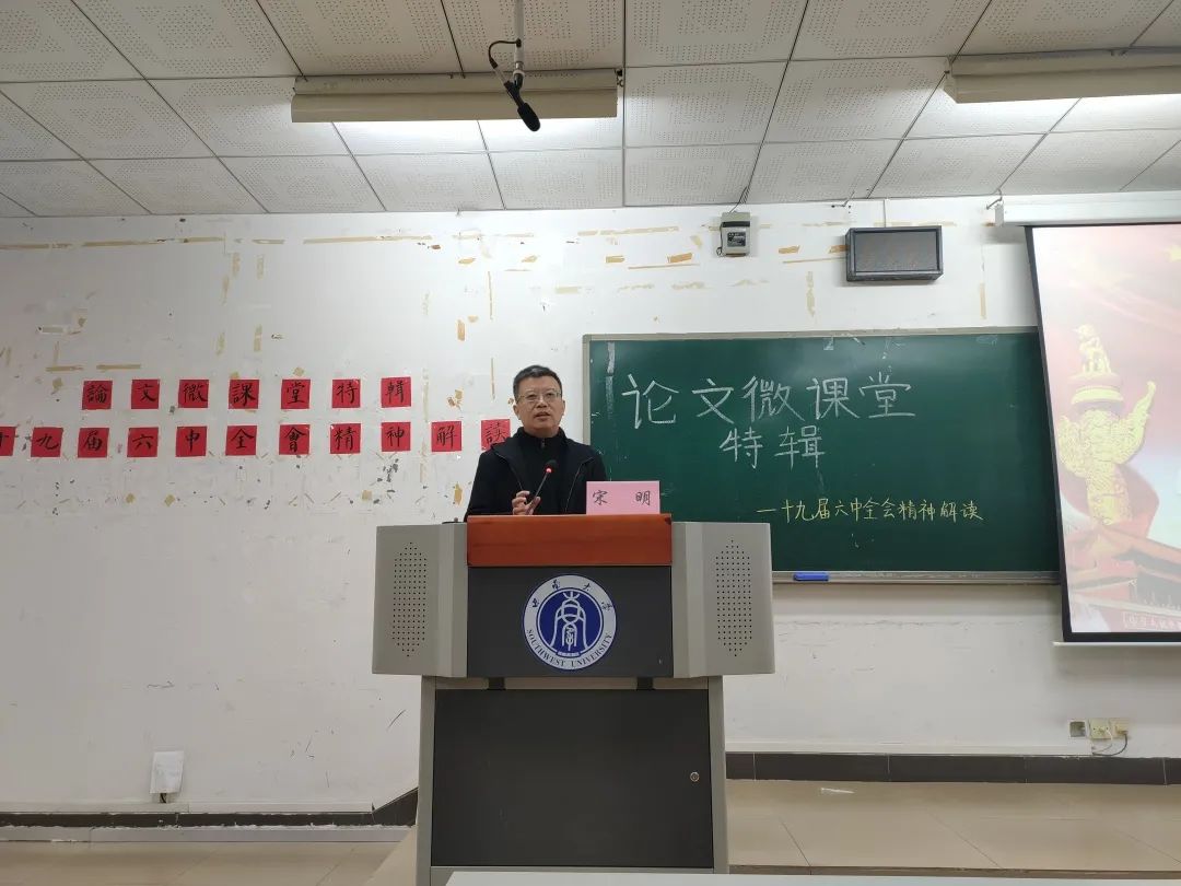 中国共产党第十九届中央委员会第六次全体会议于11月8日至11日在北京召开。为帮助马院学子进一步深入学习贯彻十九届六中全会精神,强化学科意识,走在时政前沿,12月4日上午9:30,伟德BV1946官网员工思想政治教育研究会特此于十教301举办科研成长训练营之“论文微课堂特辑——十九届六中全会精神解读”,邀请嘉宾宋明老师带领同学们全面系统学习领会十九届六中全会的内涵与要义,从党的百年奋斗重大成就和历史经验中汲取智慧力量。