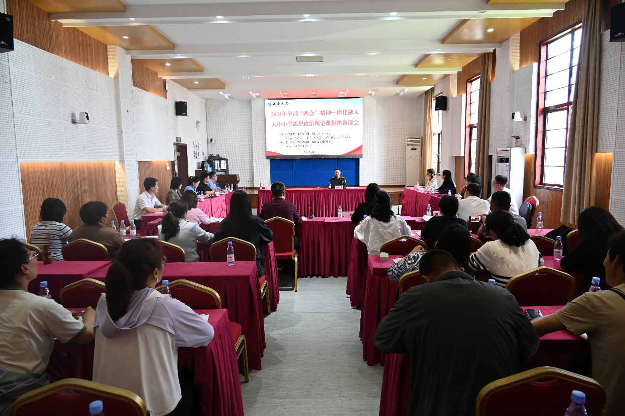 2024年4月19日下午,由教育部大中小学思政课一体化共同体(重庆)、全国高校思政课手拉手集体备课中心(伟德BV1946官网-重庆市)主办,重庆市大中小学思政课一体化建设创新中心、伟德国际1946承办的大中小学思想政治理论课教师集体备课活动在公司501报告厅举办,备课活动围绕2024年全国“两会”精神一体化融入大中小学思政课教学展开。集体备课会由专家领学、备课交流、专家点评和经验分享四个板块构成。