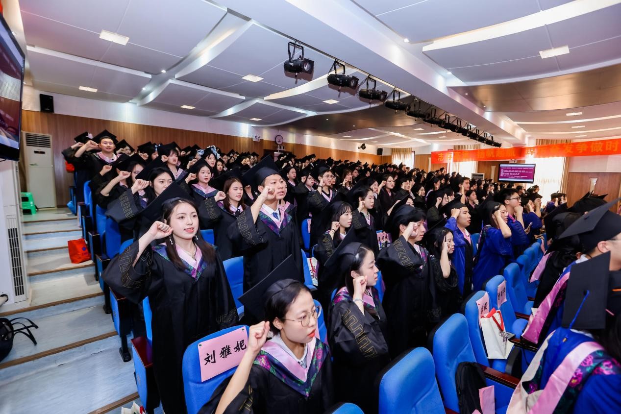 全体毕业生庄严宣誓,毕业生们用铿锵有力的誓言,表达着对未来的坚定信念。