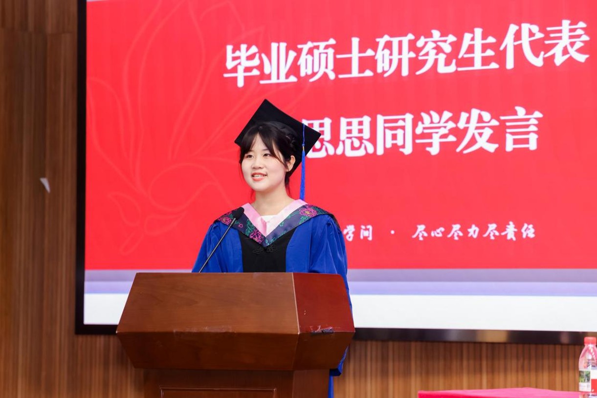 仪式上,毕业硕士研究生代表陈思思结合自己的研究方向,围绕“英雄之志”“英雄之勇”“英雄之约”三个关键词,回顾了在西大马院的求学时光,表示会继续以英雄之火燃真理之光,以青春之我赴时代之约。