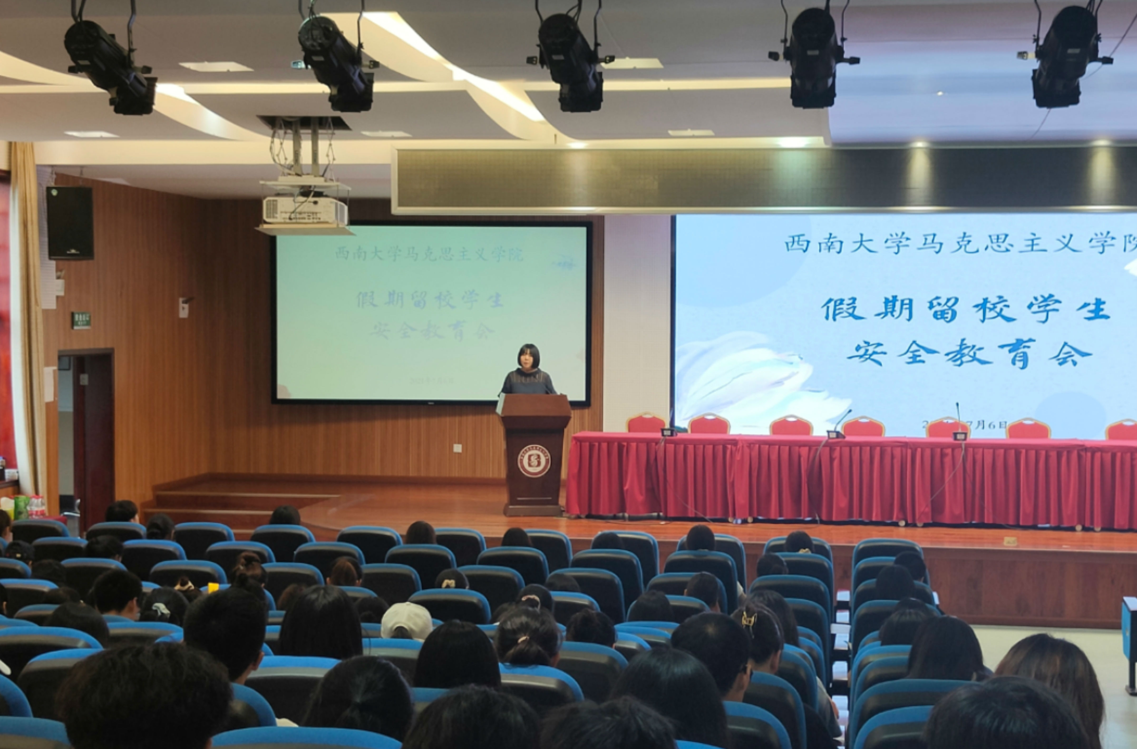 7月6日下午18时,公司于505学术报告厅召开暑期留校员工安全教育大会,公司党委副书记曾艳老师主持会议,辅导员吴克瘟老师、罗艺老师,全体留校本科生到场参加。