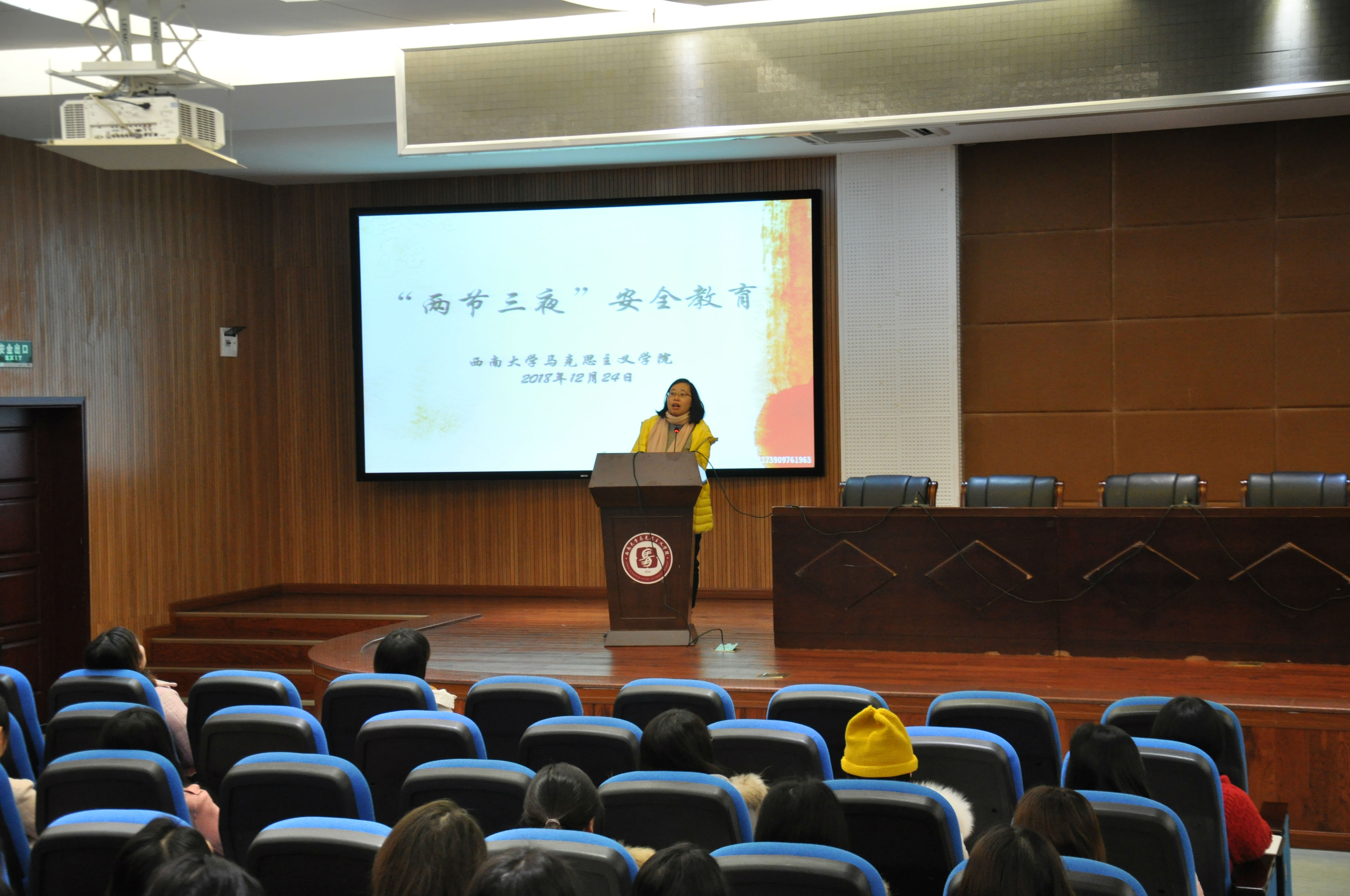 张梅书记以其坚定的政治立场和对员工强烈的责任意识进行了关于“三夜两节”的安全教育,同学们在安全教育大会的渲染下政治立场更加坚定、爱国情怀更加深切、作为马院学子所肩负的重任亦更加明确。