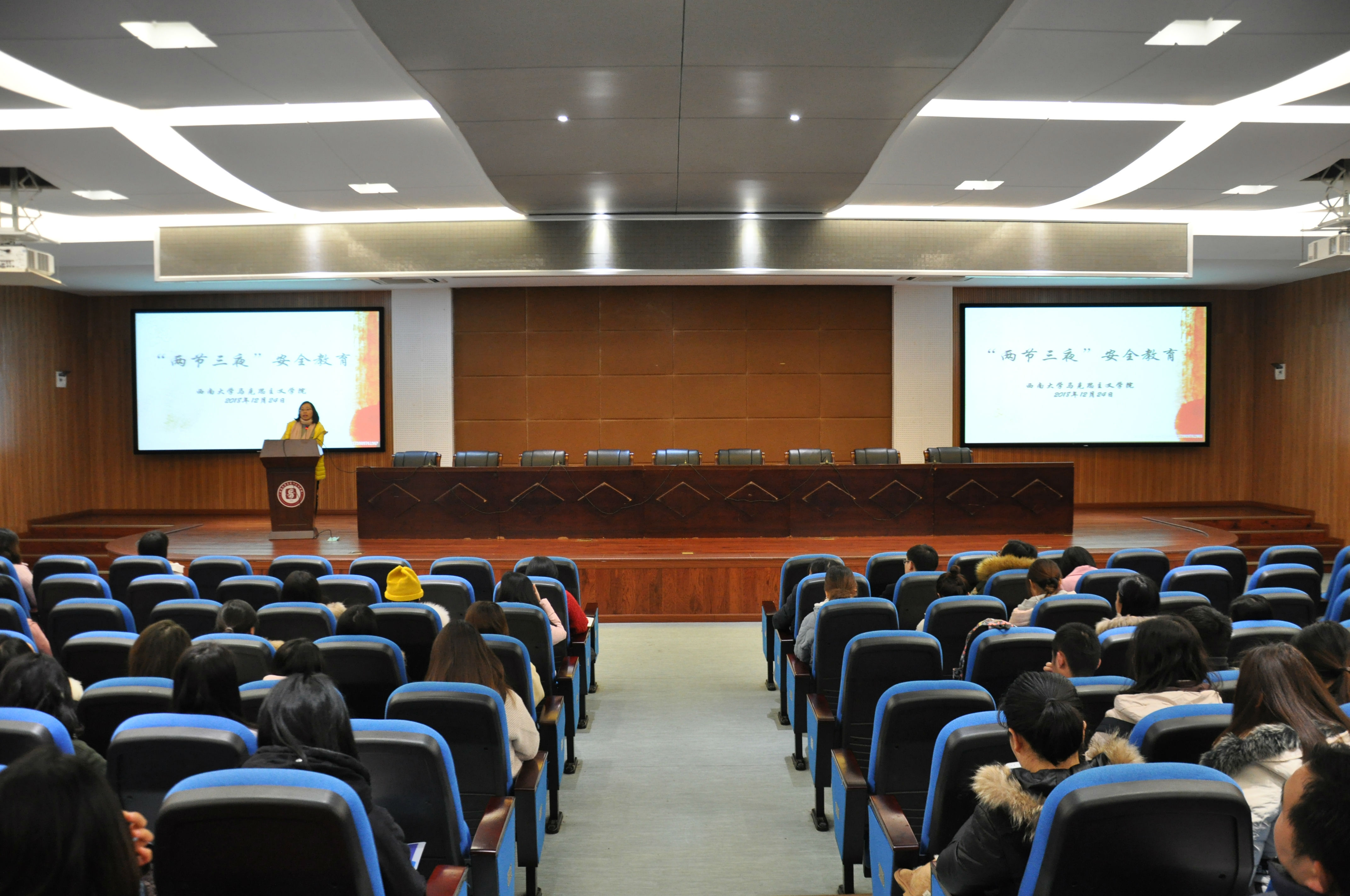 12月24日上午9点,在伟德国际1946505会议室,召开了“三夜两节”安全教育大会。大会由张梅书记主持,吴克瘟老师、全体研究生参加。