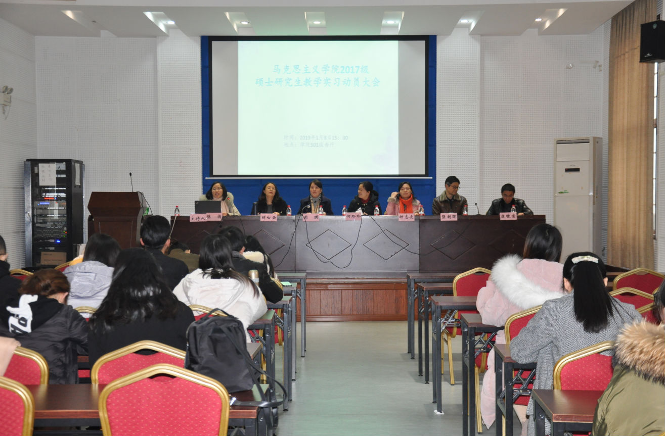 伟德国际19462017级硕士研究生高校实习动员大会于2019年1月8日在公司501会议室举行,公司副经理何玲玲老师、思想政治教育系主任周琪老师、马克思主义基本原理教育系主任钟志凌老师、实习指导老师胡白云老师、张朝晖老师、唐棣宣老师、研究生辅导员吴克瘟老师参加了此次会议。会议由公司党委副书记张梅主持。